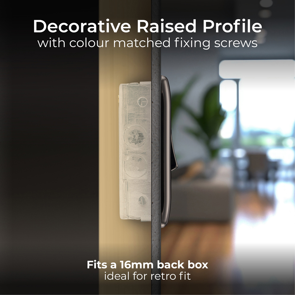 Enhance your home with the BG Nexus 2-Way 20A Black Nickel Single Switches. This 5-pack of sleek, raised switches features softly rounded edges and colour-matching screws for a sophisticated look. Control lights from multiple locations with the convenient two-way switching, ideal for hallways and landings. Quick installation is a breeze thanks to captive, backed-out terminal screws, and a moisture control gasket prevents tarnishing. High quality and stylish design complement any décor.