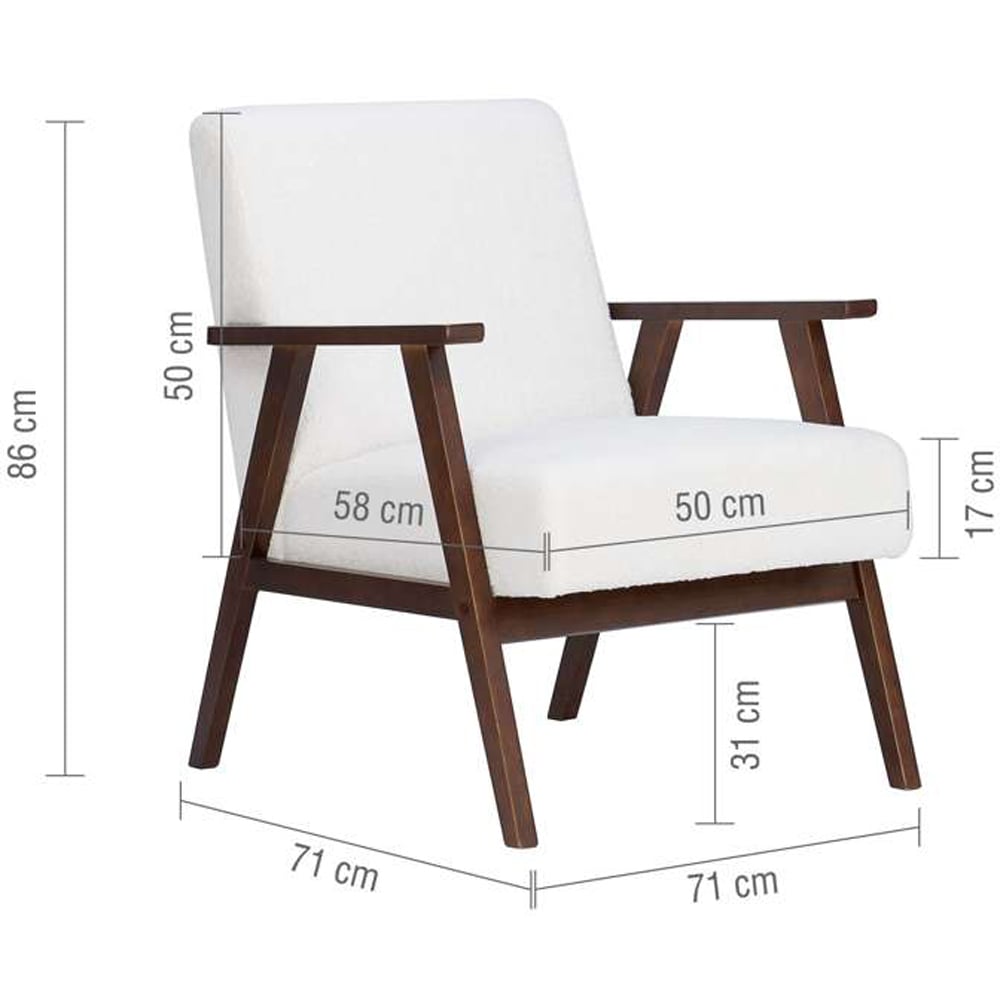 The Birlea Ellwood Boucle Armchair: a stylish addition to any room. Its sleek design and inviting upholstery options will effortlessly enhance your living space, bedroom, or home office. The plush seat and backrest offer exceptional comfort, perfect for relaxation or socialising. Crafted with a durable wooden frame in your choice of rich walnut or light oak, this minimalist armchair promises both style and lasting quality. A captivating choice for adding a touch of sophistication and comfort to your home.