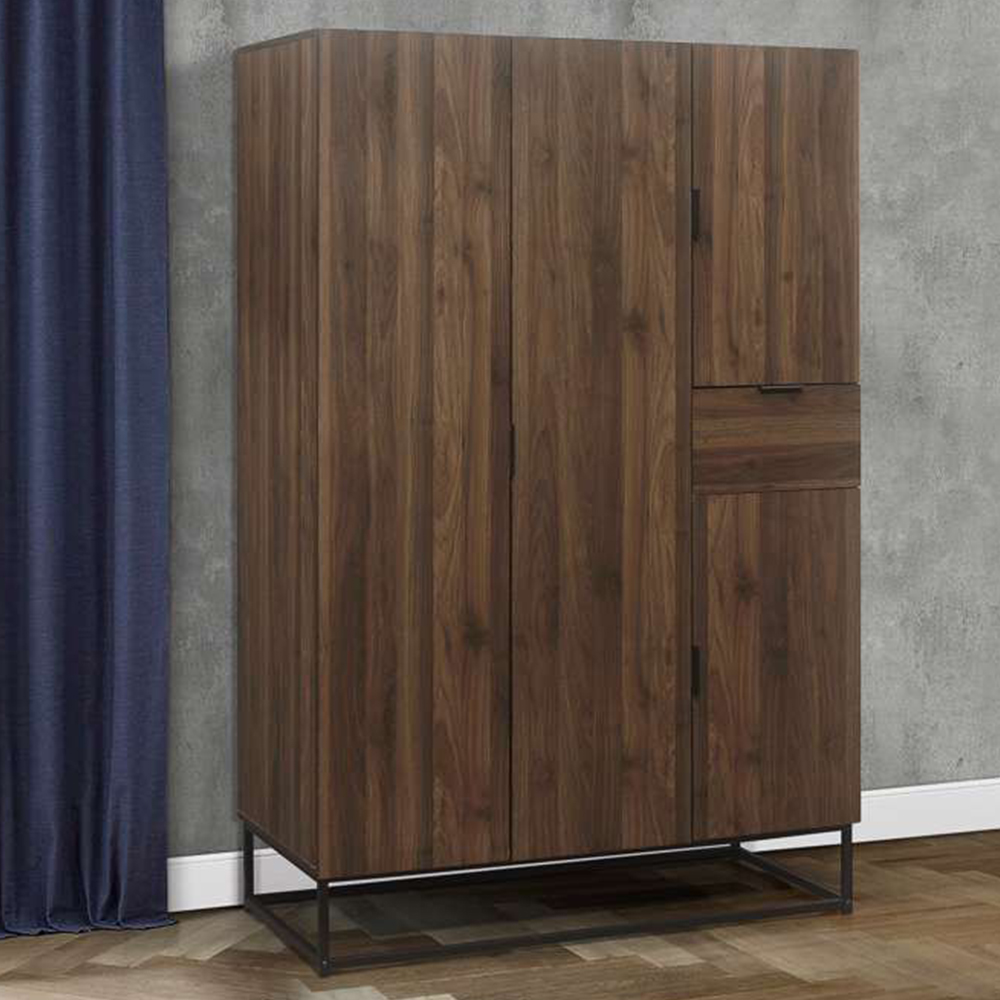 Birlea Houston Walnut 4 Door Single Drawer Wardrobe