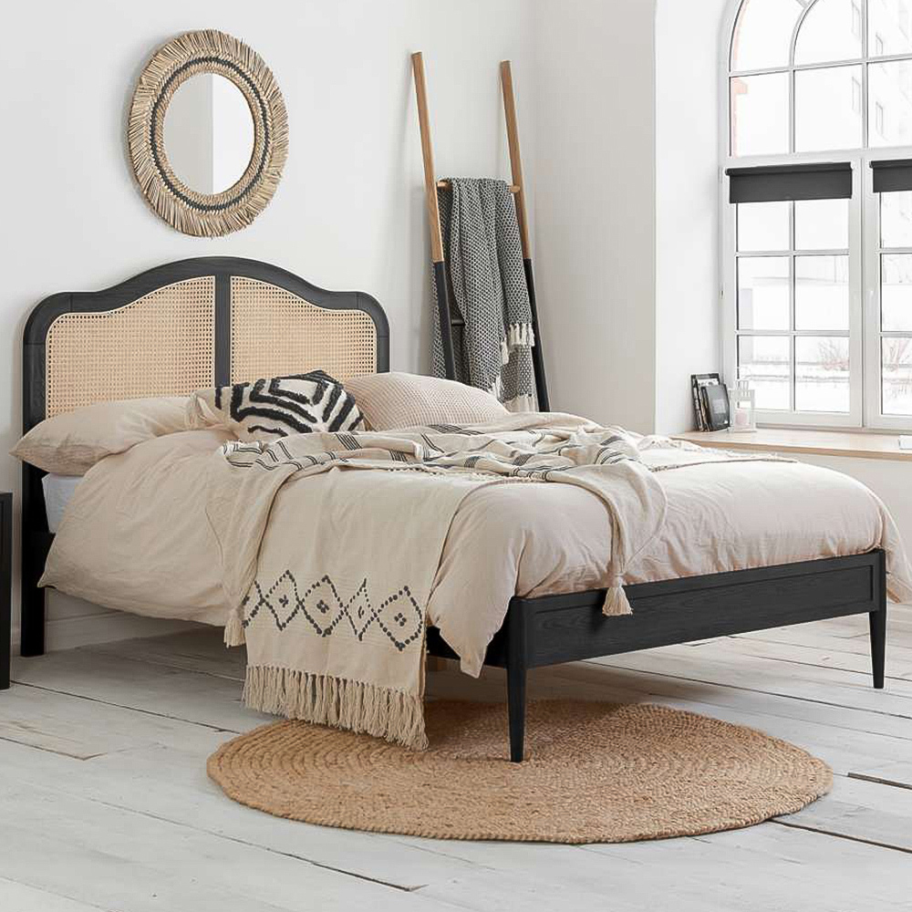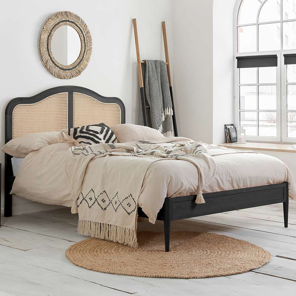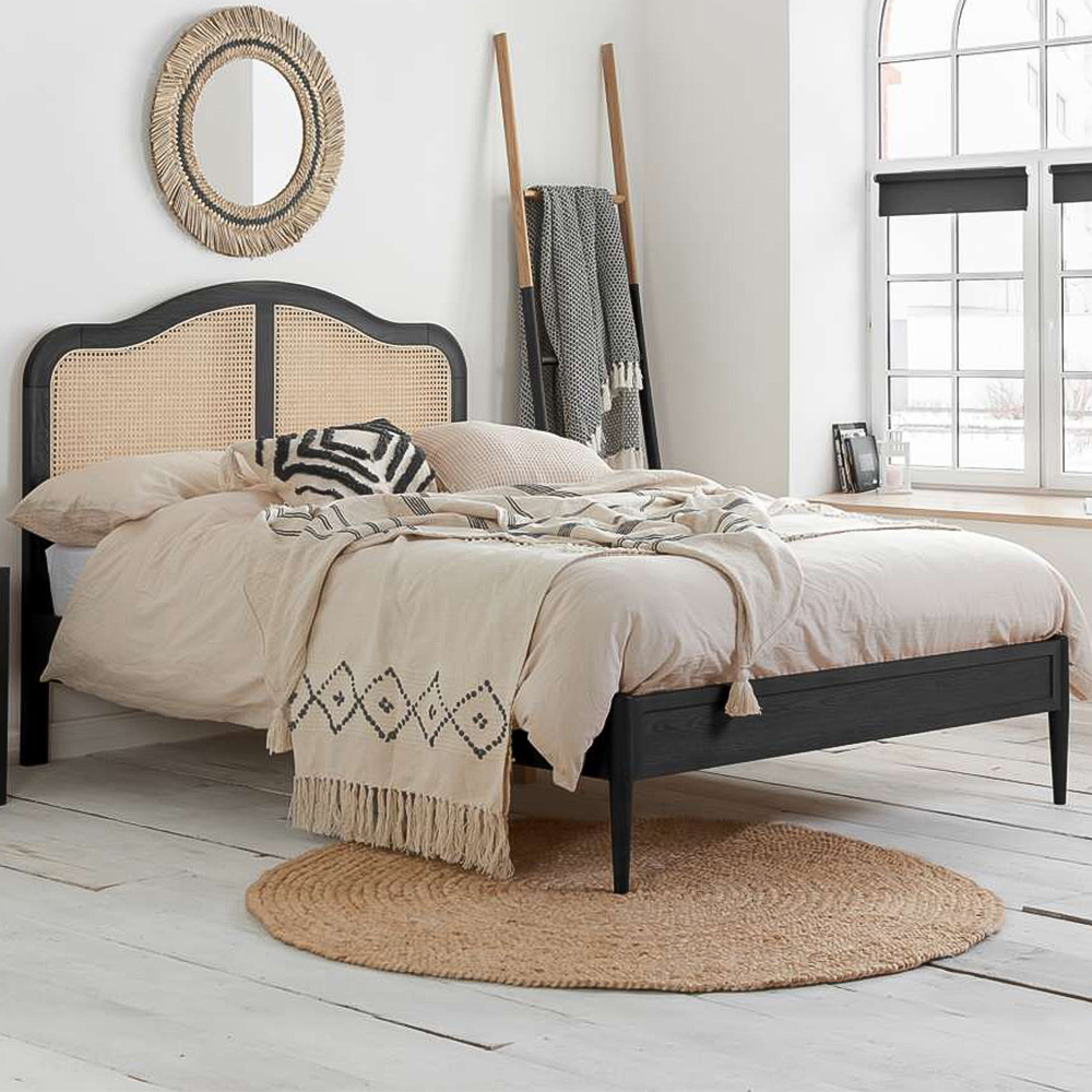 Birlea Leonie Double Black Bed with Rattan Headboard