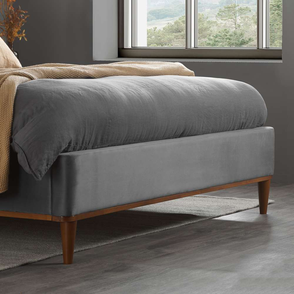 Modern and stylish, the Lincoln Velvet Bed provides comfort with its luxury velvet finish, adding a touch of class to the bedroom. Upholstered in a plush velvet fabric, the Lincoln bed invites you into a soft, sumptuous embrace. The bed’s headboard presents a striking yet understated profile, offering ample support for evening reads or morning coffee in bed. Crafted with durability in mind, this bed frame will remain a sanctuary for relaxation for years to come. It has a solid slatted base that encourages air circulation and provides a firm foundation for your mattress, promising an enhanced sleep experience. The Lincoln velvet bed transforms any space into a haven of chic tranquillity.
