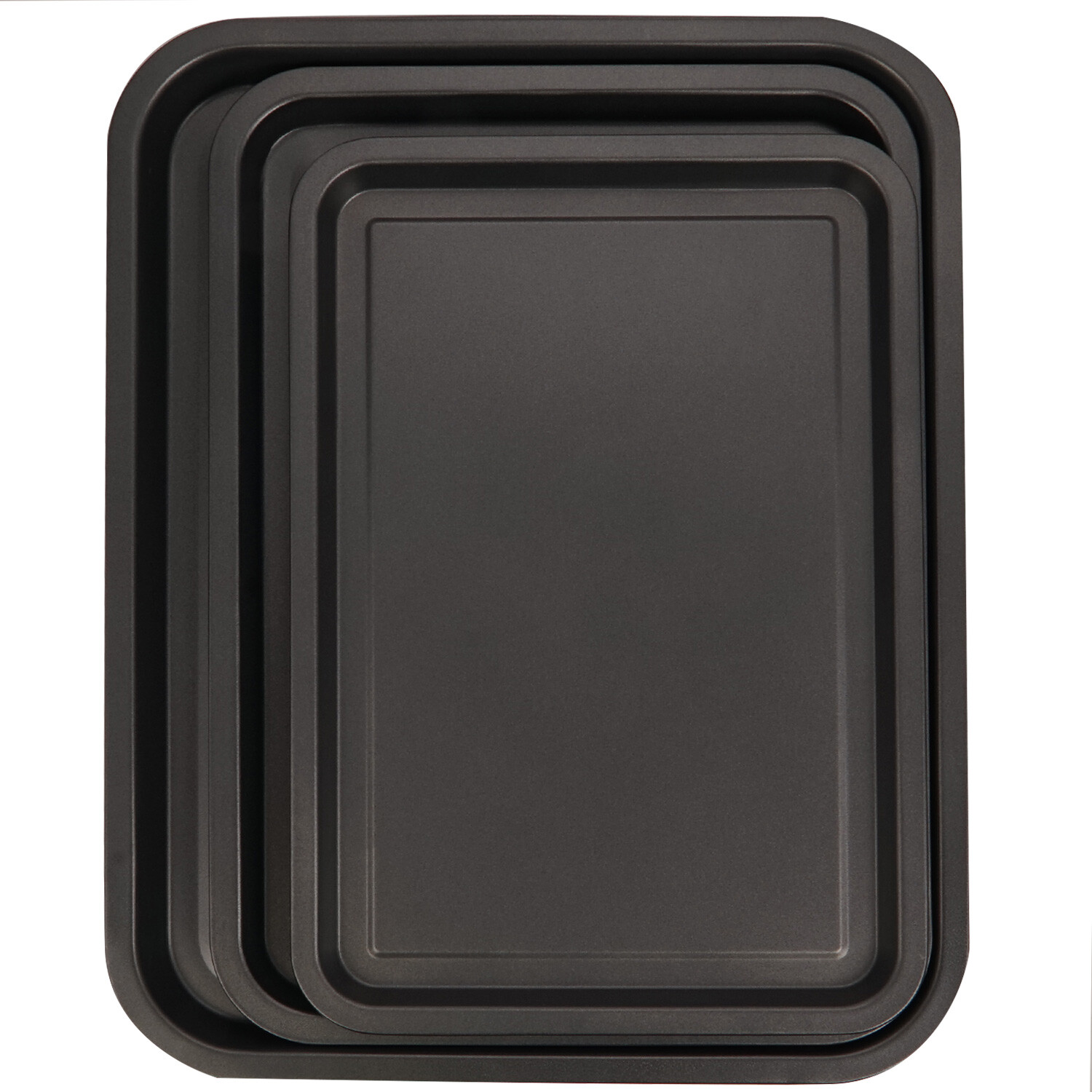 This 3-Piece Oven Tray Set is a reliable and reasonably priced addition to any kitchen. The set includes three different sized trays to suit all your cooking needs. Perfect for roasting vegetables, meat, or baking, these trays will see you through! A non-stick coating makes cleaning a breeze, and they're fridge, freezer, and dishwasher-safe for ultimate convenience. Suitable for all oven types, this set is a real help in the busy kitchen.
