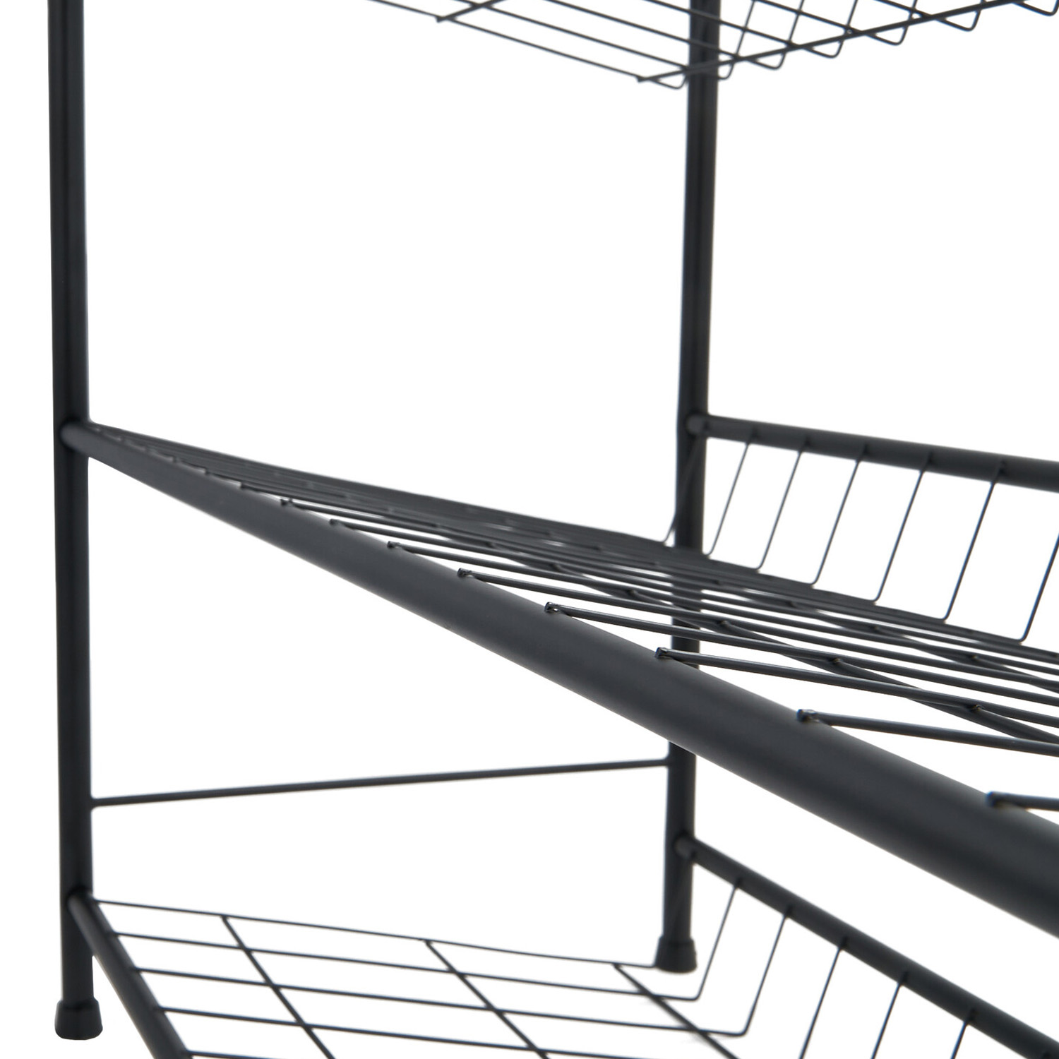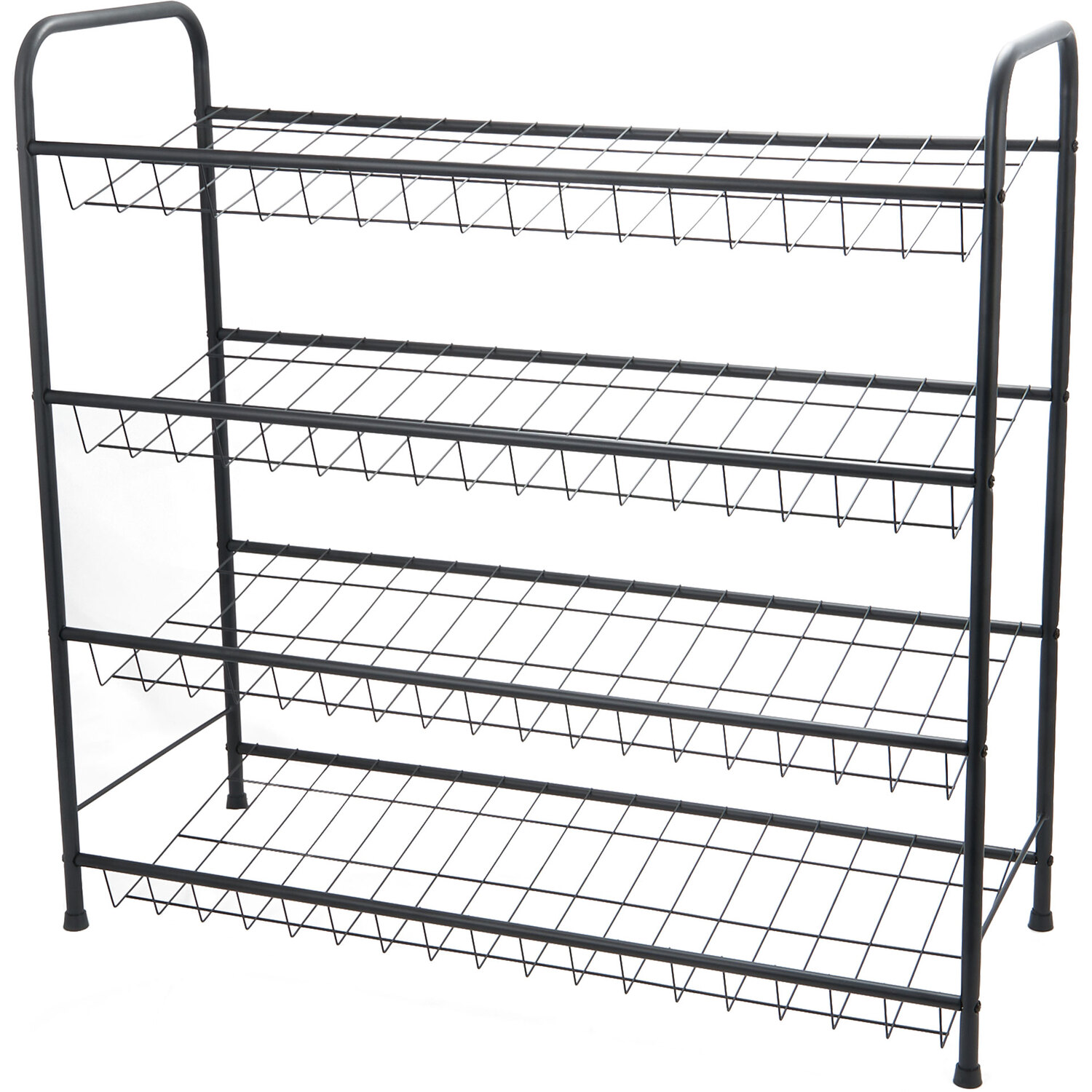 Effortlessly organise your footwear with this four-tier shoe rack. Offering a generous 2.5m² of storage, it's ideal for families or avid shoe collectors. The simple black design complements any home décor, while its four tiers comfortably accommodate trainers, work shoes, boots, and wellies. Easy assembly is ensured.