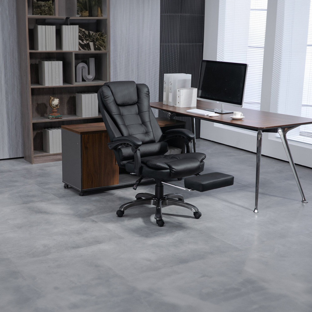 Indulge in ultimate relaxation with this heated massage chair, blending timeless elegance with modern comfort. Its classic executive design, finished in luxurious faux leather, offers a sophisticated addition to any home office. Six independently controlled vibration massage motors and a soothing heat function allow for a truly personalised experience. The thoughtfully designed pocket on the chair's back keeps the remote conveniently to hand. Plush padding in both the seat and back ensures exceptional comfort, complemented by supportive armrests. A robust, five-castor star base provides excellent stability and peace of mind. This chair is the perfect companion for those long working days, promising a haven of calm and relaxation.