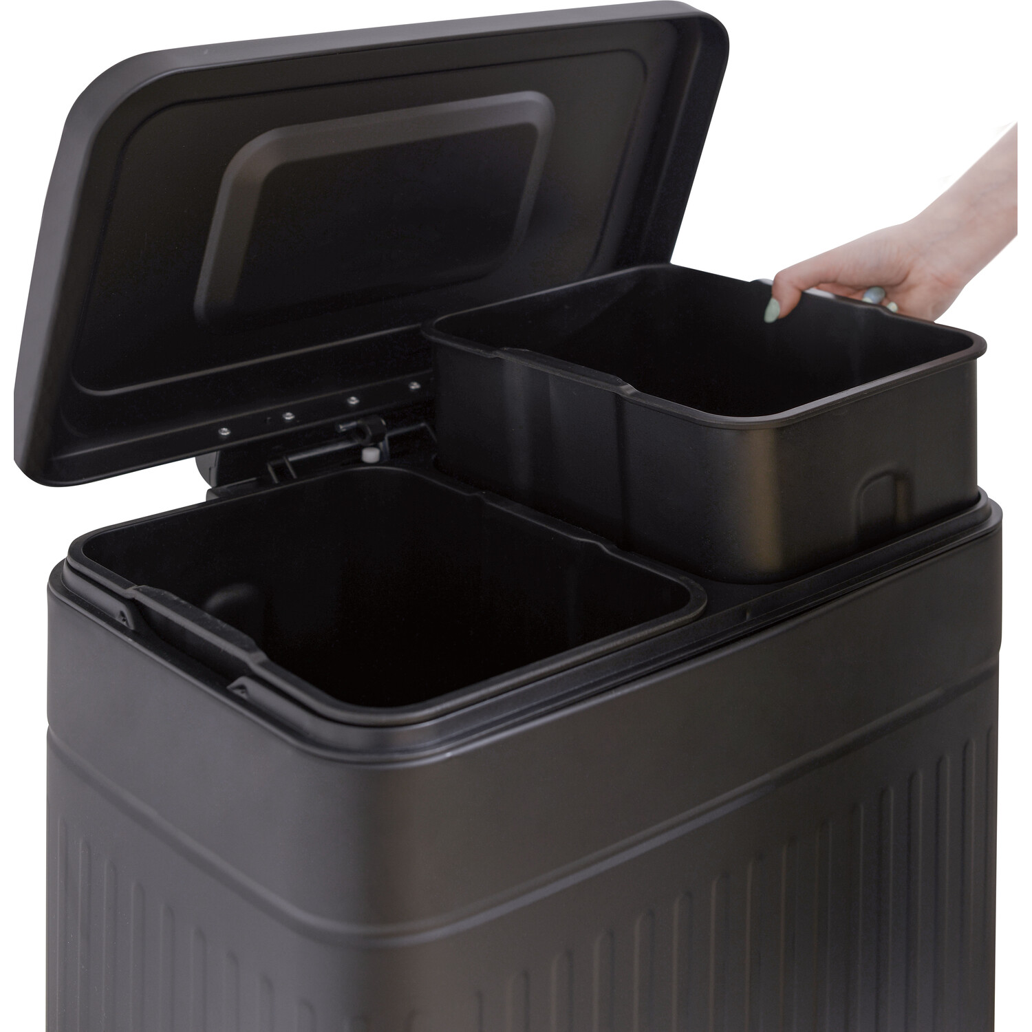 Keep your kitchen clean and organized with this stylish 60L ribbed recycling bin. Its generous capacity is perfect for larger households, easily accommodating all your recyclables. The two compartments make sorting glass, paper, and other materials a breeze. The classic ribbed design and sleek black finish add a touch of elegance to your space, while the convenient foot pedal keeps your hands clean.