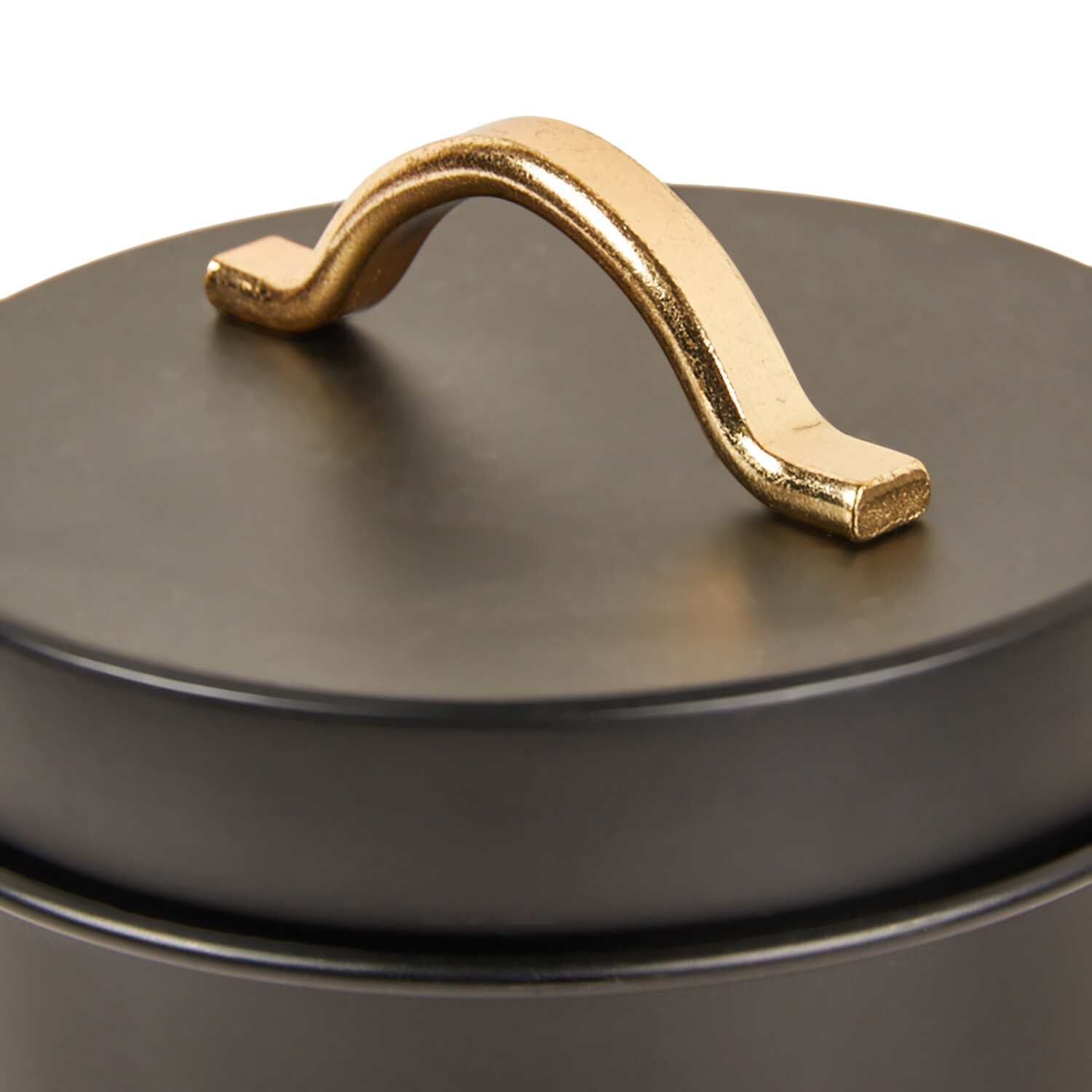 Bring a touch of contemporary flair to your kitchen storage with this ribbed canister bin. The sleek, matte black finish and distinctive ribbed base are complemented by a gold carry handle, creating a modern yet sturdy design. Easy to care for, this canister is perfect for keeping your food supplies fresh for a long time and adding a charming accent to your home.
