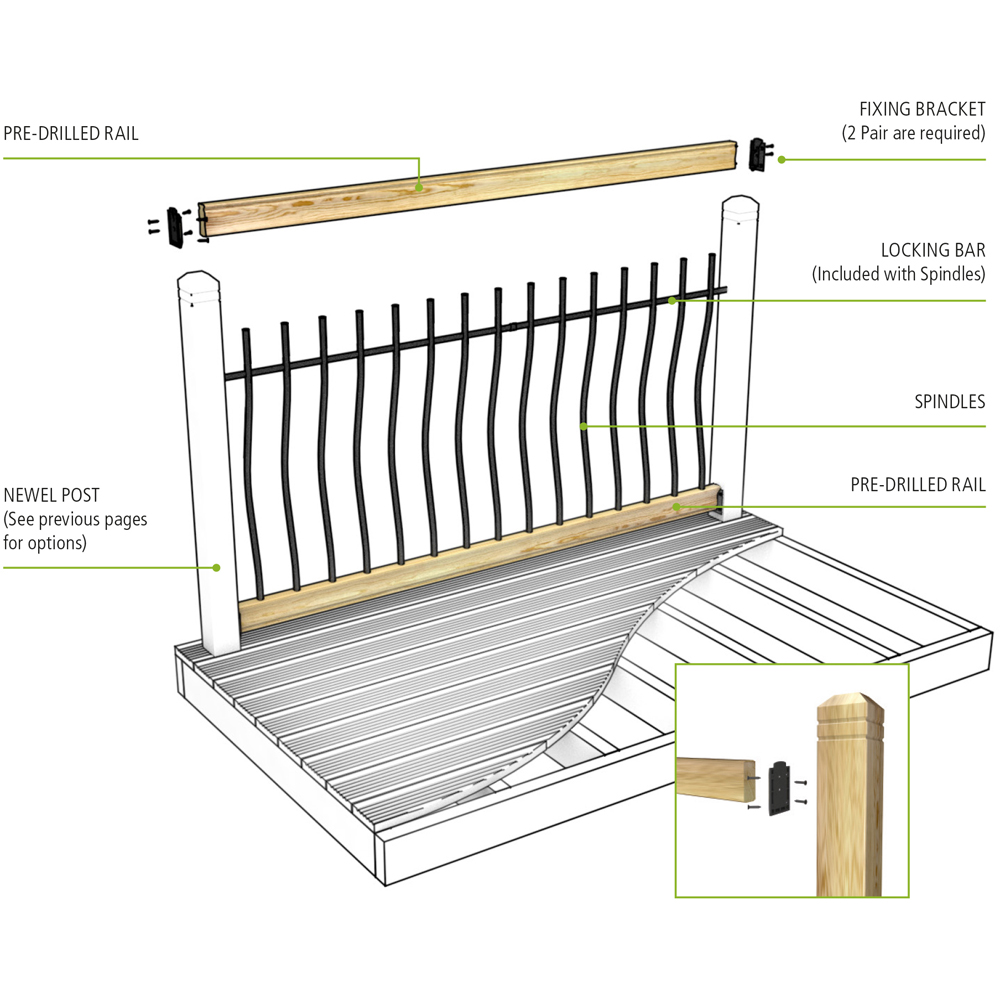 Blueprint Joinery Black Metal Tuscany Bowed Deck Balustrade Start Kit 1800 x 940mm