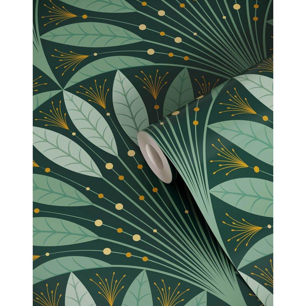 Elevate your home with the Eco Luxury Art Deco Leaf Green Fan Wallpaper by Bobbi Beck. This vibrant frond design, inspired by Art Deco, injects a bold splash of colour into any room. It's not just stylish, it's also durable, protecting your walls from everyday wear and tear. Crafted from eco-friendly luxury materials and using water-based, non-toxic inks, this wallpaper is a beautiful and responsible choice. The striking pattern repeats every 75cm in a straight match, requiring a butt joint application. Each roll measures 75cm wide and 7m high.