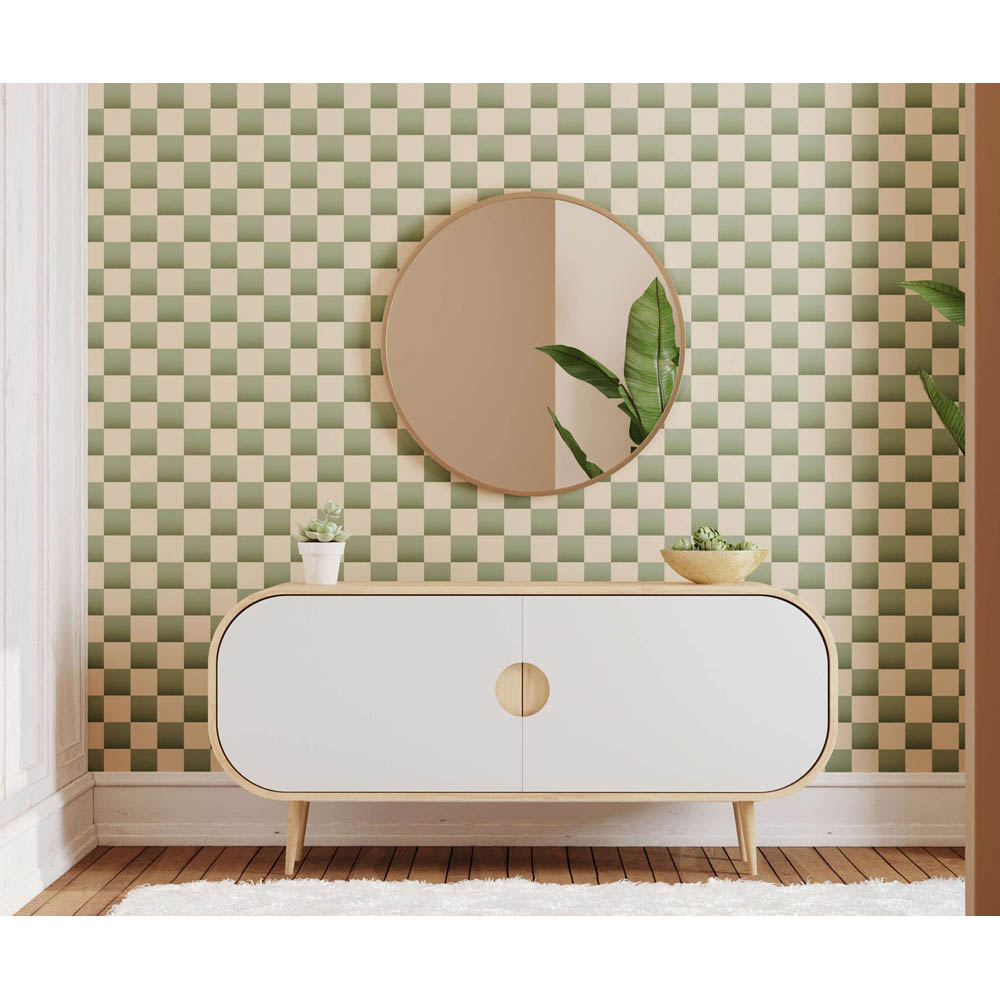 Give your space a contemporary update with the Eco Luxury Chequerboard Green Wallpaper. Its eye-catching chequerboard pattern adds personality to any room, while offering durable protection against everyday wear and tear. Made from high-quality, eco-friendly materials, it's a stylish and responsible choice. Roll Width: 75cm. Roll Height: 7m. Pattern Repeat: 75cm. Pattern Match: Straight Match. Application: Butt Joint.