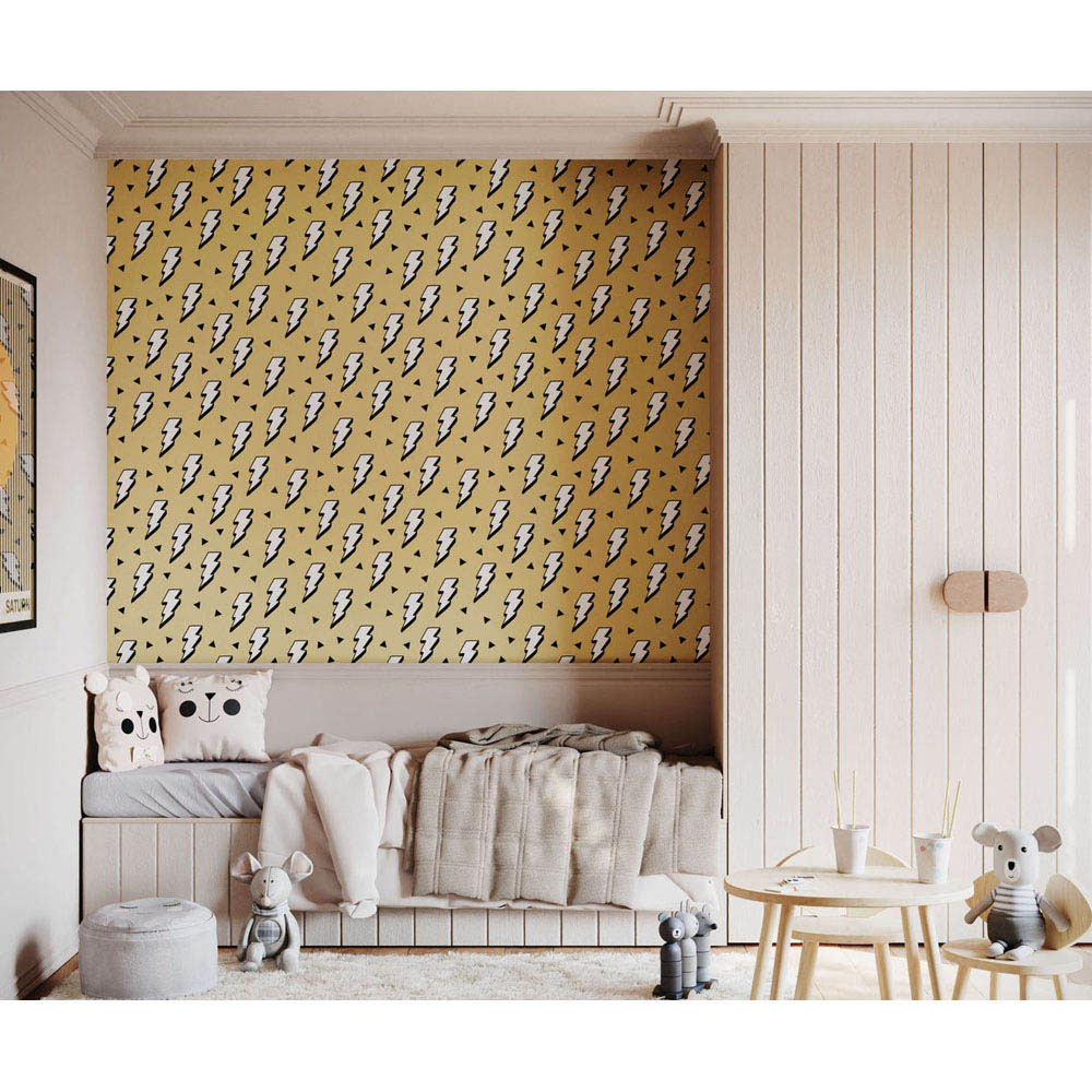 Bobbi Beck Eco Luxury Childrens Lightning Bolt Yellow Wallpaper