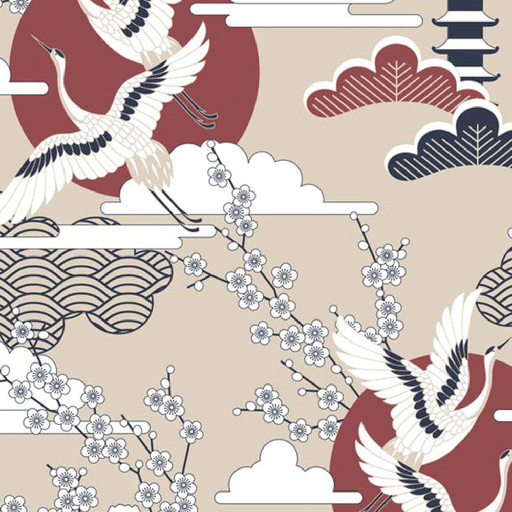 Bring serenity to your space with this Eco Luxury Crane and Cherry Blossom Beige wallpaper. Featuring delicate cranes, cherry blossoms, and other tranquil motifs, this wallpaper offers a sophisticated interior style. Made with high-quality, eco-friendly materials and water-based, non-toxic inks, it's both durable and environmentally responsible. The straight match pattern repeats every 100cm vertically. Each roll measures 7m in height and 75cm in width, with a butt joint application.