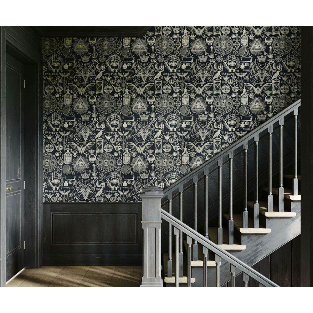 Elevate your living space with the dramatic Eco Luxury Gothic Black Wallpaper. This occult-inspired design, printed in the UK, offers a unique aesthetic for the unconventional homeowner. Crafted with eco-friendly luxury materials and water-based, non-toxic inks, it's a stylish and responsible choice. Each roll measures 75cm wide and 7m high, with a 75cm straight match pattern repeat and butt joint application.