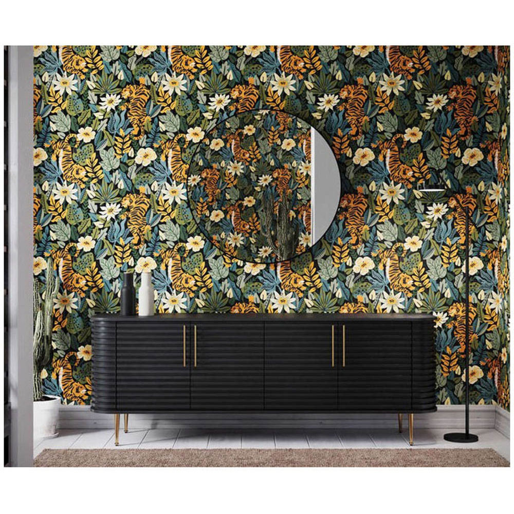 Transform your space with the vibrant Bobbi Beck Eco Luxury Tiger Jungle Black Wallpaper. This maximalist design creates a stunning feature wall, perfect for adding bold character to any room. Crafted from high-quality, eco-friendly materials and using water-based, non-toxic inks, it's both durable and environmentally responsible. The striking tiger print is sure to make a statement. Each roll measures 7m in height and 75cm in width, with a straight match and a 75cm vertical pattern repeat. Simply apply using a butt joint method.