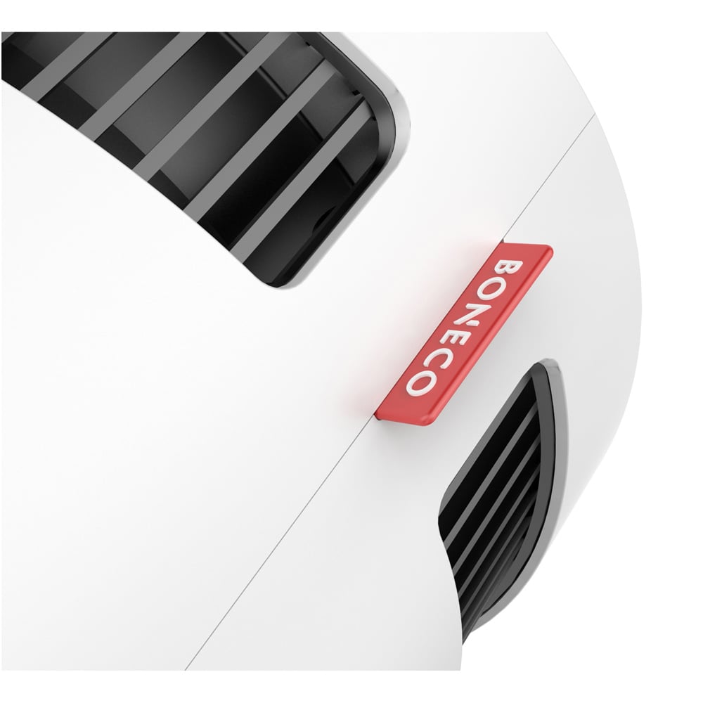 Enjoy a refreshing breeze with the Boneco F120 White Air Shower Fan. Ideal for bedrooms and mid-sized rooms, its stylish, innovative single-arm design delivers superior airflow. The 270-degree rotating head offers exceptional versatility: direct it at yourself for personal cooling, or bounce the airflow off walls or ceilings for that signature air shower effect. Three speed settings, easily adjusted via a rotary knob, ensure your perfect comfort level.