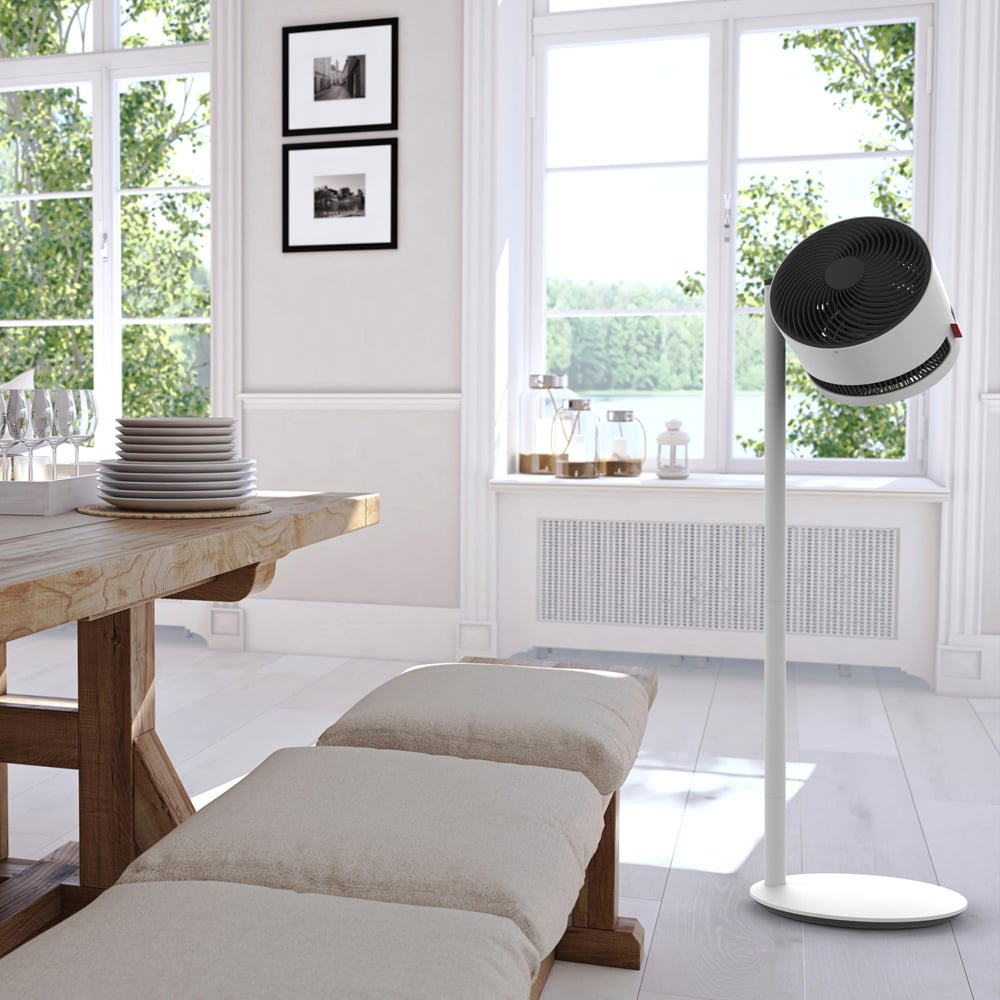 The Boneco F230 air shower fan is exceptionally versatile. Its stylish, innovative single-arm design ensures superior airflow and maximum air intake. The 270-degree rotating head offers unparalleled flexibility: direct the airflow for personal cooling, or bounce it off the ceiling or walls to create the signature air shower effect. This effectively reduces temperature variations between floors and creates a more even climate, it can also pull fresh air indoors or be used with an air conditioner. The deep-pitch fan blades and uniquely curved front grid maximise airspeed. Available in heights of 49cm, 85cm, or 121cm, it’s ideal for any space, from single rooms to large open-plan areas or high-ceilinged rooms. A single security screw secures the fan blade, simplifying maintenance and ensuring safe operation.