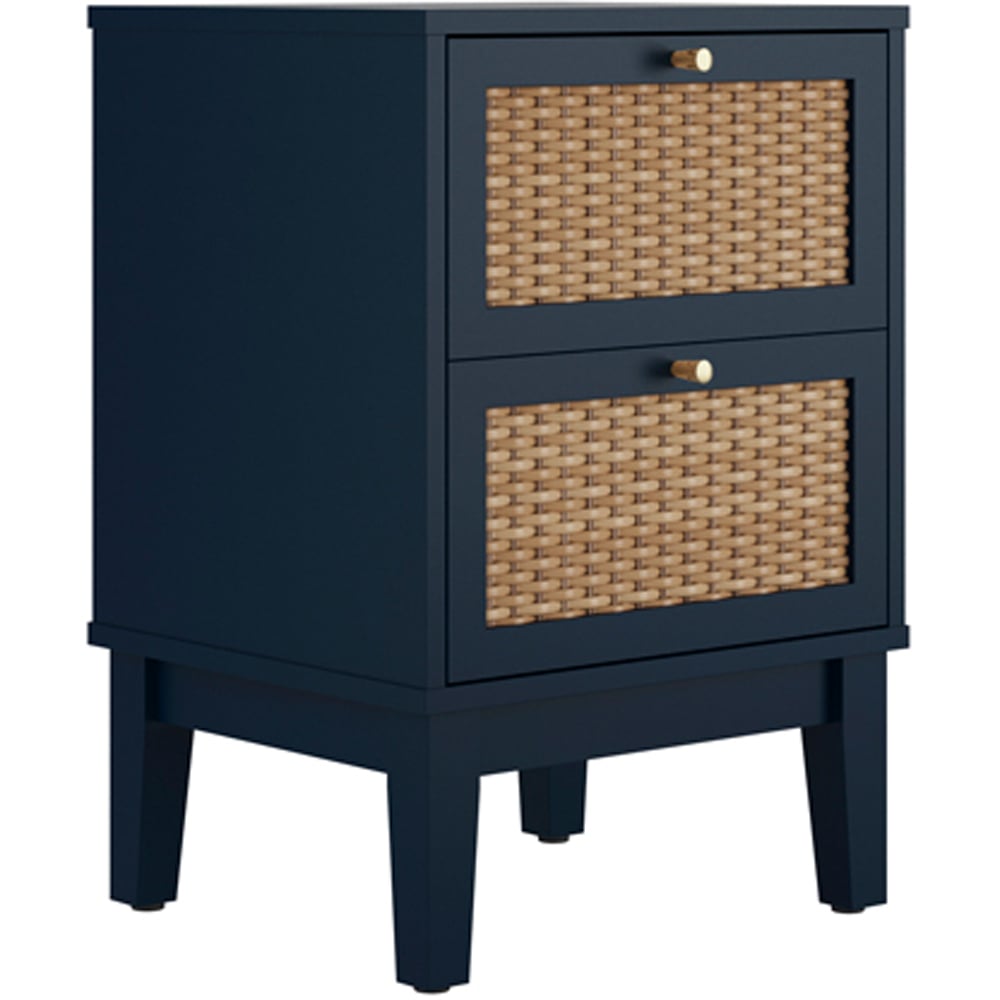 Bordeaux 2 Drawer Blue Rattan Bedside Cabinet