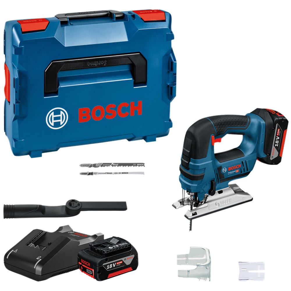 Master curved and straight cuts with ease using this professional-grade 18V Bosch GST jigsaw. Ideal for tackling solid wood, chipboard, wood composites, and even thick, hard materials, this tool offers superior control thanks to its comfortable bow handle and variable speed trigger. Blade changes are a breeze with the tool-free SDS system. This package includes an anti-splinter guard, three jigsaw blades (T 244 D, T 308 BP, and T144 DP), two powerful 18V 4.0Ah Li-ion batteries, a charger, and a convenient L-BOXX 136 carrying case. Boasting a 23mm stroke length and a 0-45° bevel capacity, it cuts through wood up to 120mm, aluminium up to 20mm, and unalloyed steel up to 8mm. Its no-load speed ranges from 0-2,700 strokes per minute. Weighing only 2.4kg (including battery), this powerhouse is compatible with all 18V Bosch Professional batteries and chargers and also works with AMPShare, the multi-brand battery alliance. Get precise, powerful cuts every time.