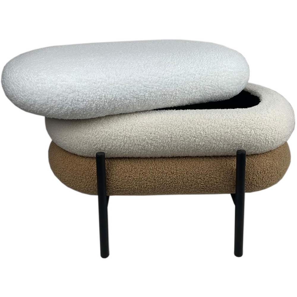 Boucle Fabric 3 Tier Natural Storage Footstool