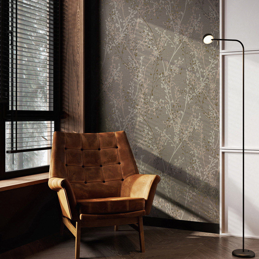 Transform your space with this serene wallpaper, a captivating blend of matte and metallic gold branches delicately layered over a subtly shimmering woven texture. The calming natural tones create a peaceful atmosphere, whilst the easy paste-the-wall application makes it a breeze to install, cleverly concealing minor wall imperfections.