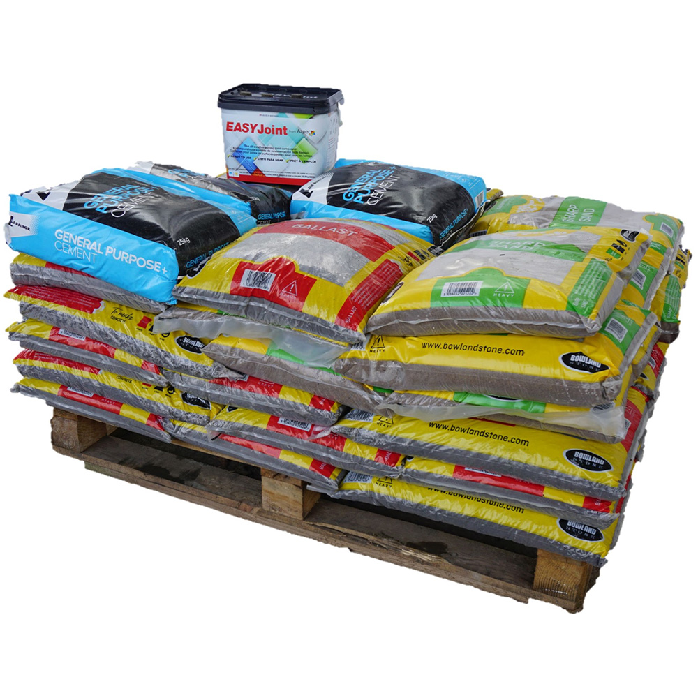 Everything you need for a perfect patio installation, conveniently delivered on a single pallet. Includes all essential materials: sand, cement, comprehensive instructions, and a handy laying guide. The ideal complement to our patio and paving packs.