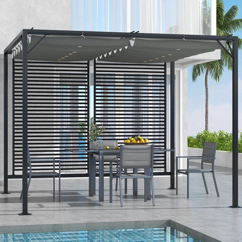 Outsunny Grey Pergola with Retractable Roof 3 x 3m