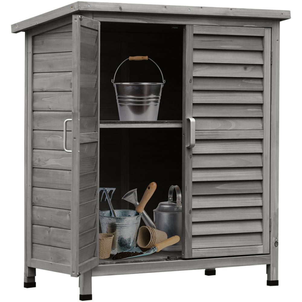 Outsunny 3 x 2.8ft Grey Double Door Wooden Garden Storage Shed