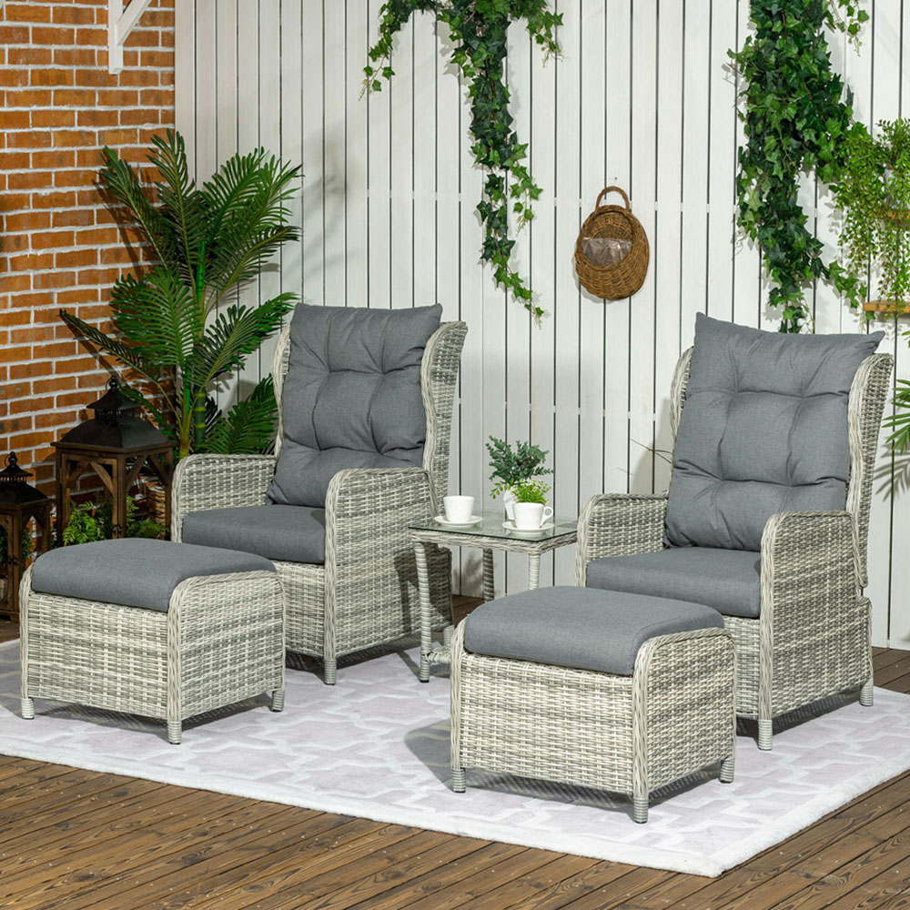 Outsunny 4 Seater Grey Rattan Garden Lounge Set