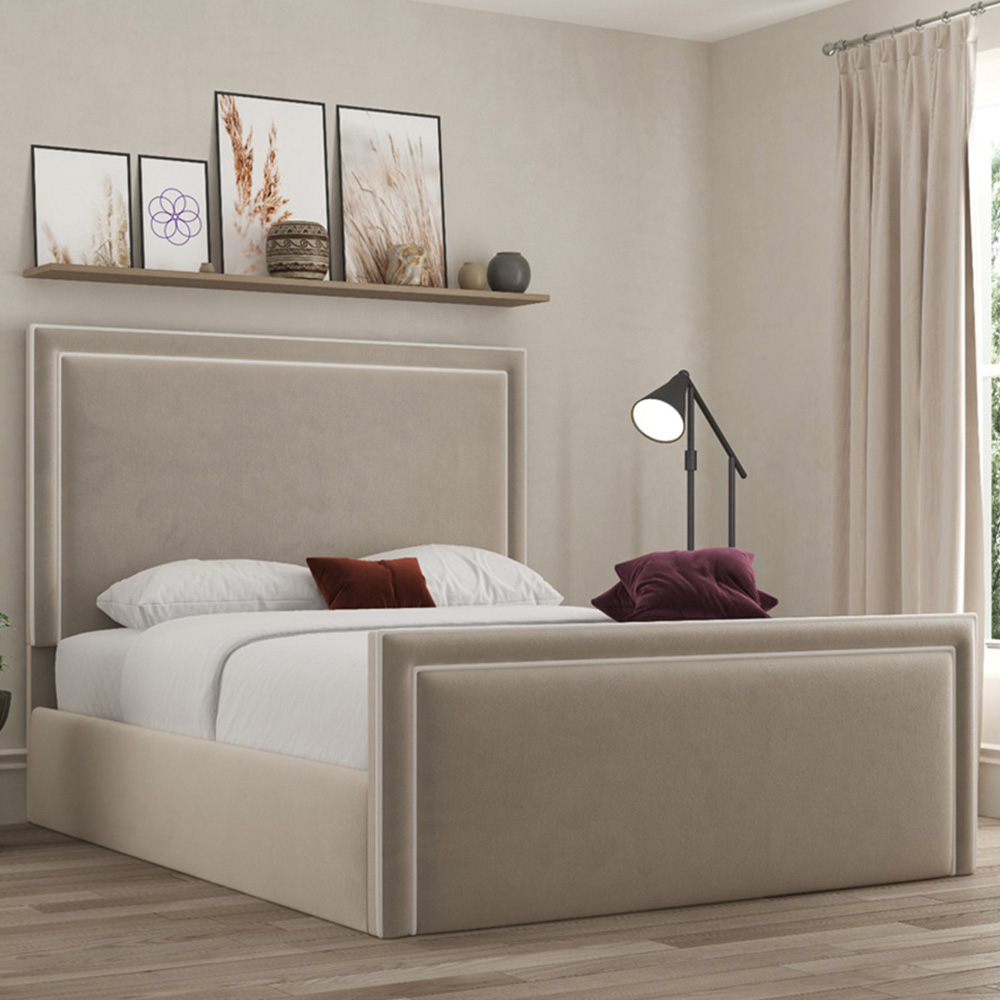 DS Living Verona Bistra Beige Super King Size Piping Ottoman Bed