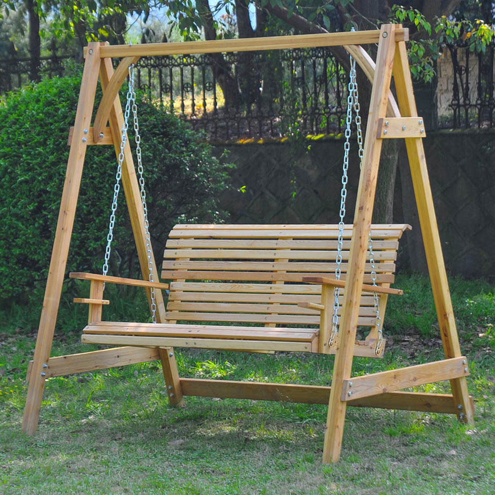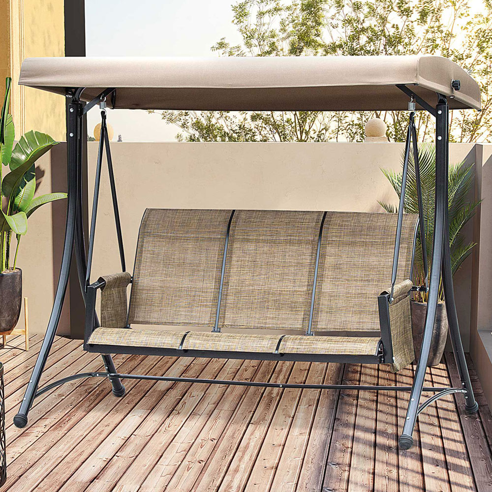 Outsunny Light Brown 3 Seater Garden Swing Chair with Adjustable Canopy