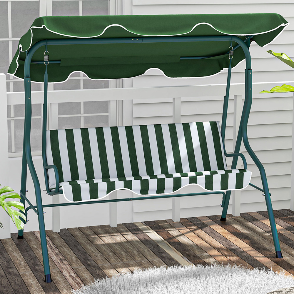 Outsunny 3 Seater Green Garden Swing Chair with Canopy