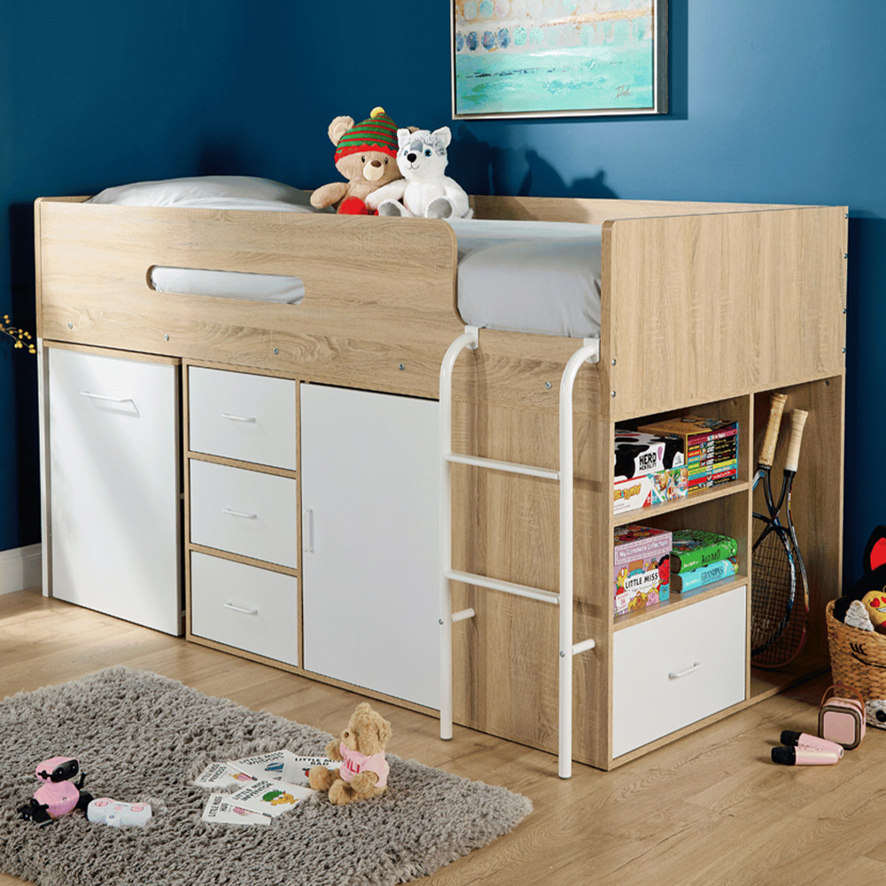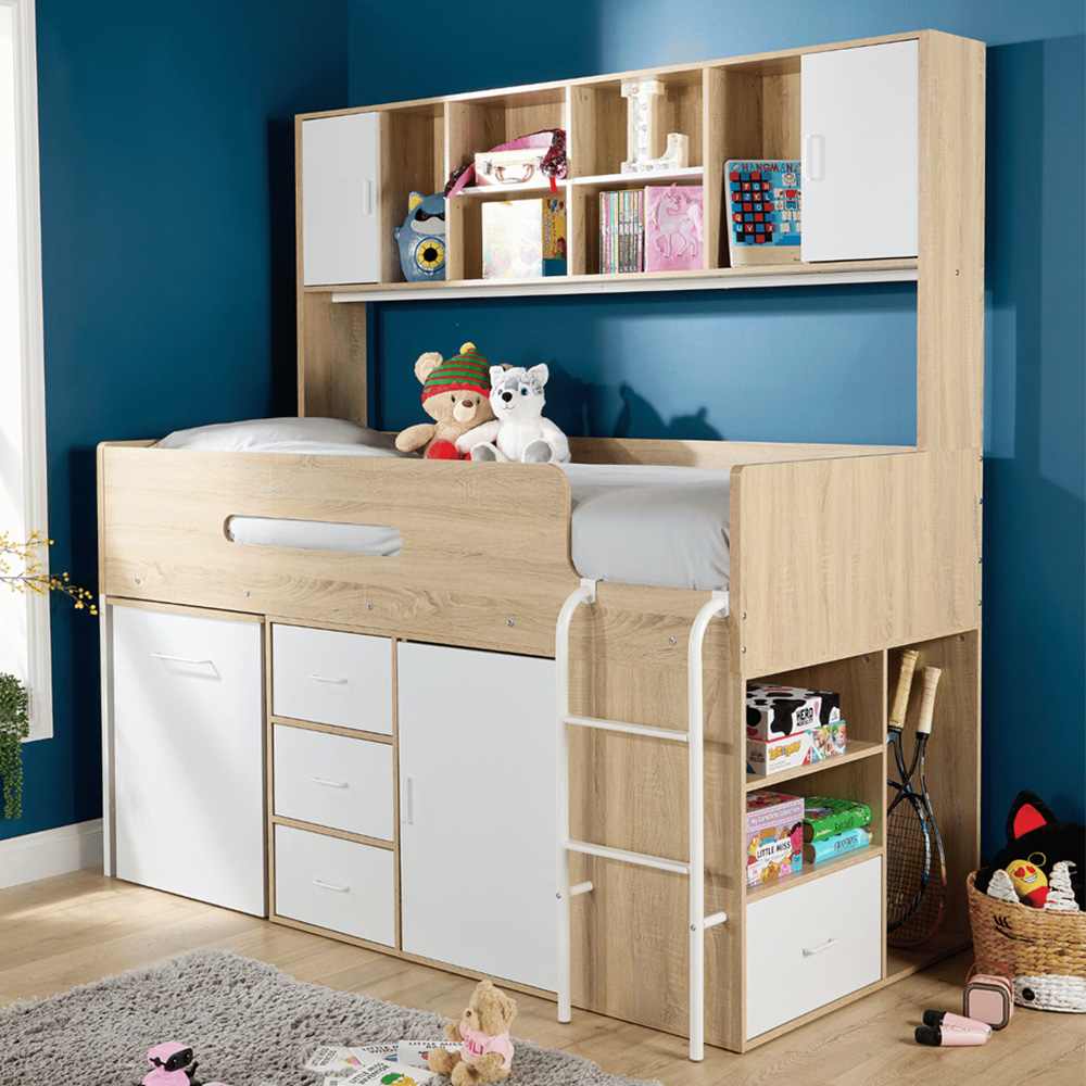 Home Source Marsden Oak and White Cabin Bed with Storage Shelf