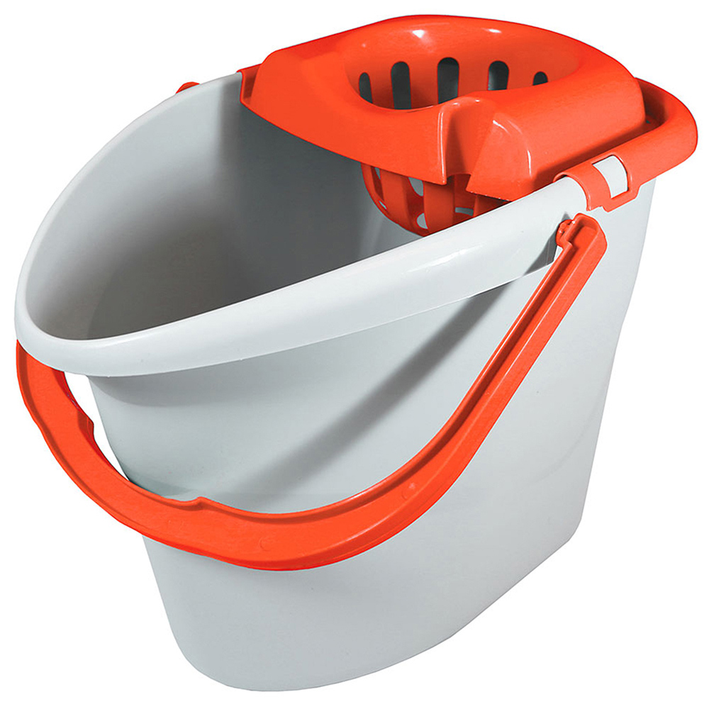 Clean your floors effortlessly with this 14-litre mop bucket and microfibre mop set. The sturdy bucket boasts a detachable wringer and a handy easy-pour spout for quick and convenient cleaning. The absorbent microfibre mop head features abrasive spots to tackle even the most stubborn dirt. Designed for space-saving storage, the mop features a 3-part handle, while a sturdy carry handle and clip-on wringer add to its practicality. Available in a range of attractive colours, this set is perfect for cleaning tiles and wooden floors.