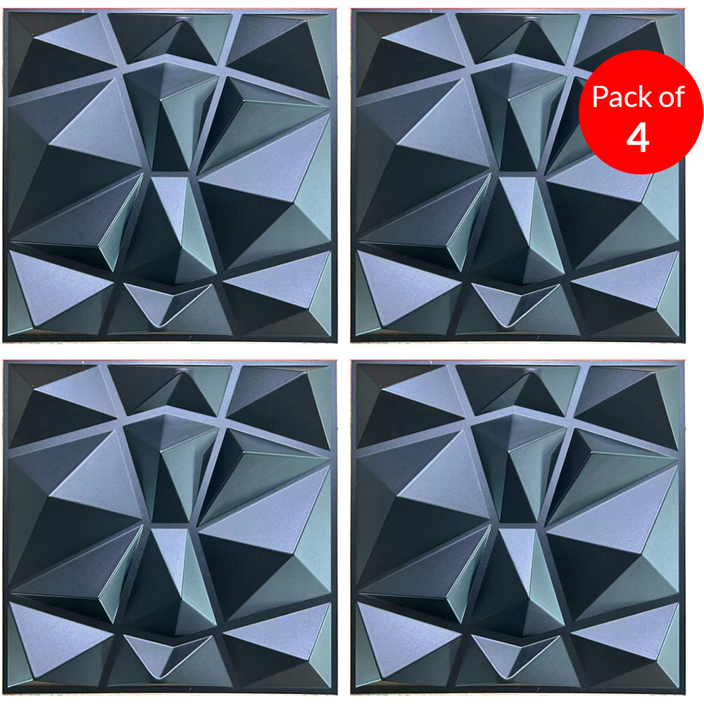 Britwall 3D Black Faceted Diamond PVC Wall Panel 500 x 500 x 1mm 4 Pack