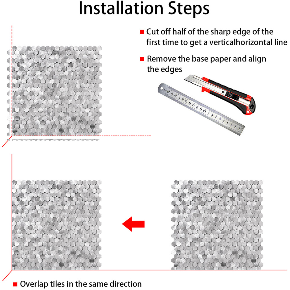 Give your home a quick and stylish update with these hexagonal aluminium peel and stick tiles. Their contemporary design adds a touch of modern sophistication to kitchens, bathrooms, or any feature wall. Made from premium aluminium, these tiles are a breeze to install – simply peel and stick for a hassle-free transformation. Enjoy an elegant upgrade without the fuss.