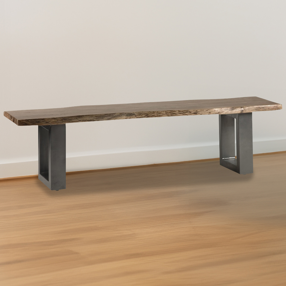Introduce a touch of nature to your dining area with the Brooklyn Barima 3 Seater Wooden Dining Bench. This bench showcases the unique, organic edges of the wood, celebrating its inherent form. Supported by robust, sled-shaped metal frame legs, it's a stylish and durable addition to any home.