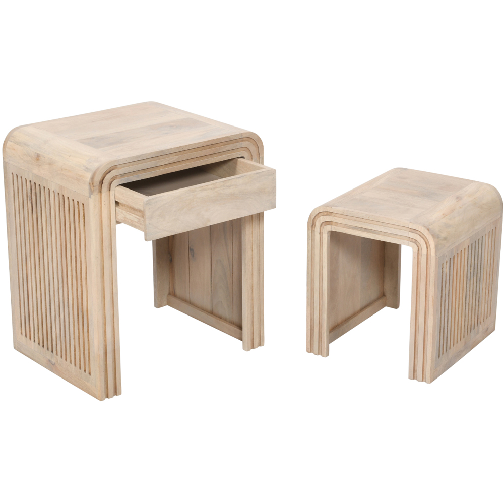 Brooklyn Hudson Single Drawer Carved Mango Wood Nest of Tables Set of 2