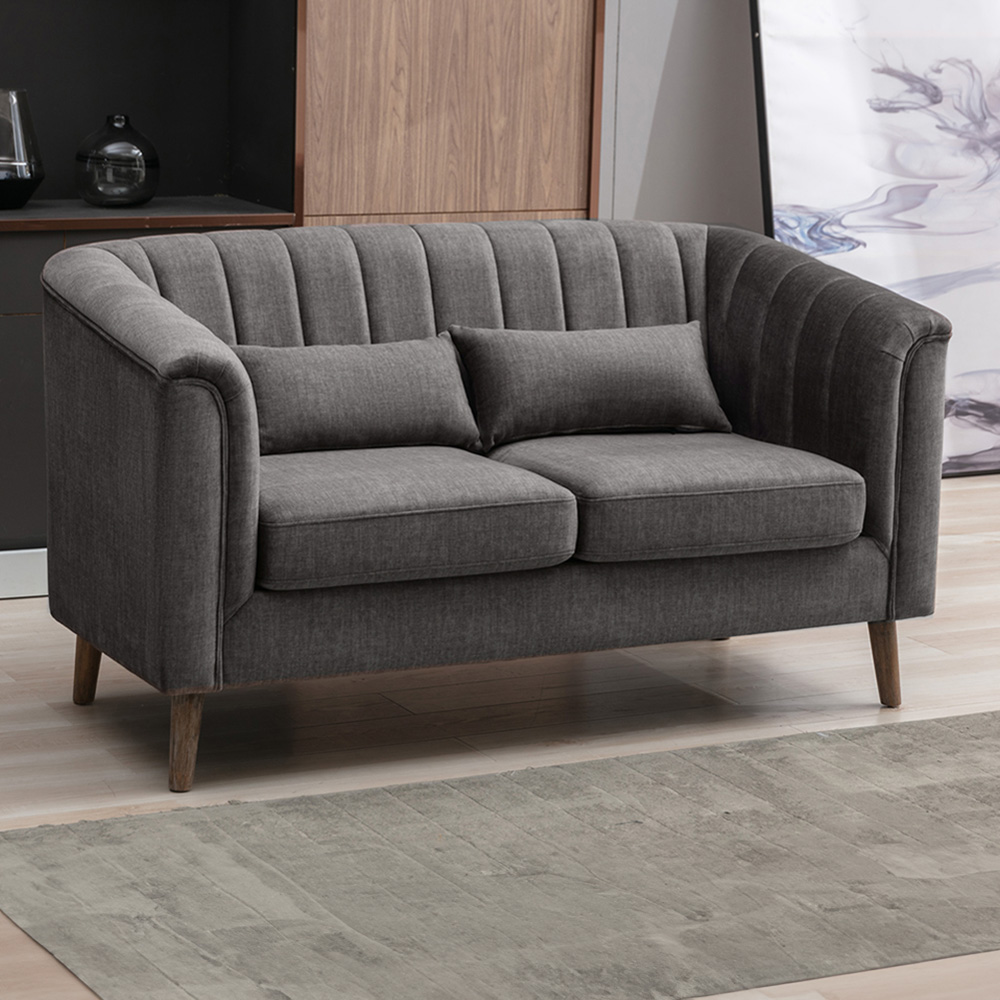 This sofa offers both style and comfort, featuring a modern shape and elegant back detailing. The cosy fabric is complemented by included scatter cushions and sturdy wooden feet.