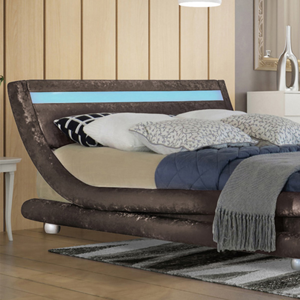 Brooklyn Modern Curved Double Brown Crushed Velvet Bed Frame with LED