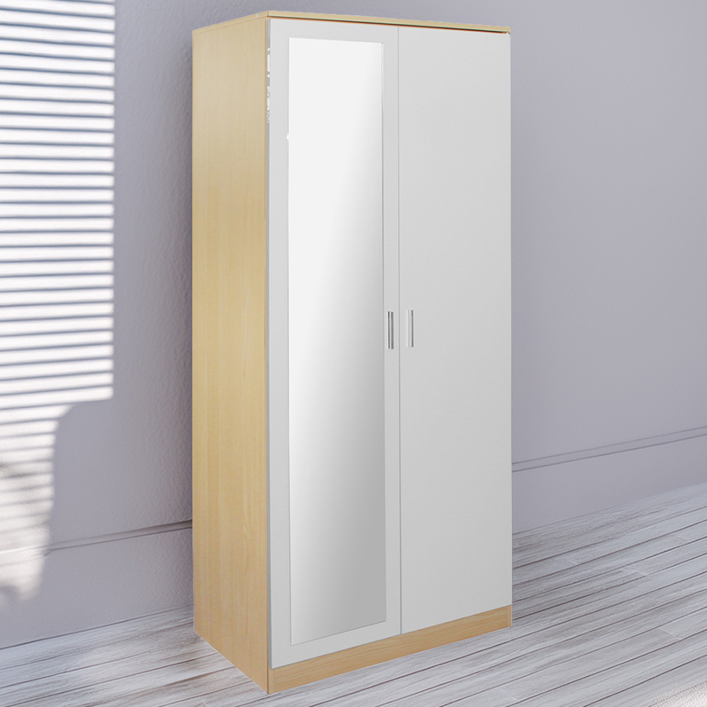 Brooklyn Oak and White High Gloss 2 Door Wardrobe with Mirror