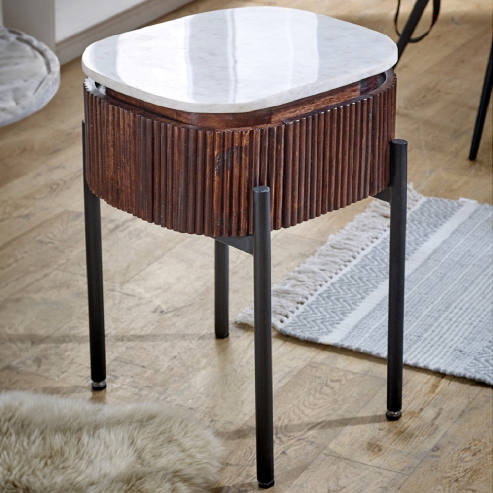 Brooklyn Opal Single Drawer Marble Top Mango Wood Bedside Table