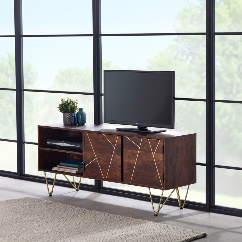 Brooklyn Ozella 2 Door 2 Shelf Dark Gold Plasma TV Unit