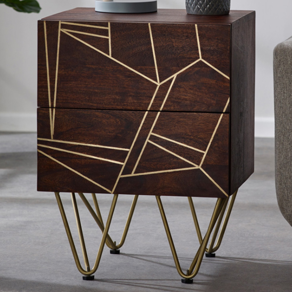 Brooklyn Ozella 2 Drawer Dark Gold Side Table