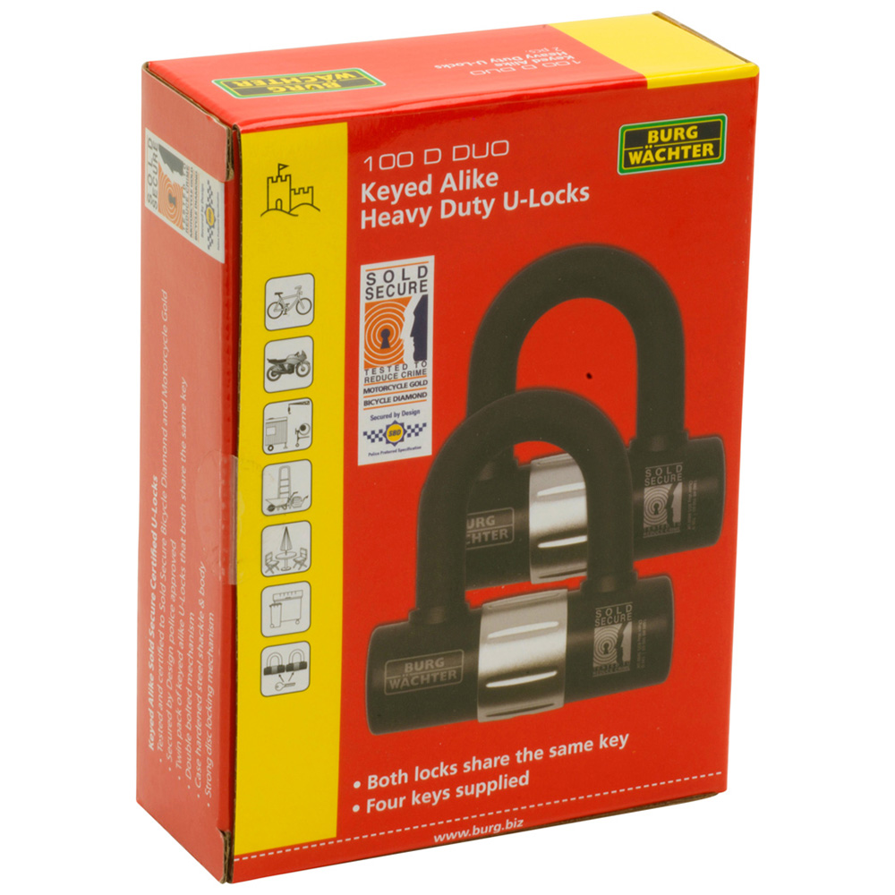 Burg-Wachter 100D Duo Sold Secure Gold Keyed Alike U-lock, Twin Pack, Black