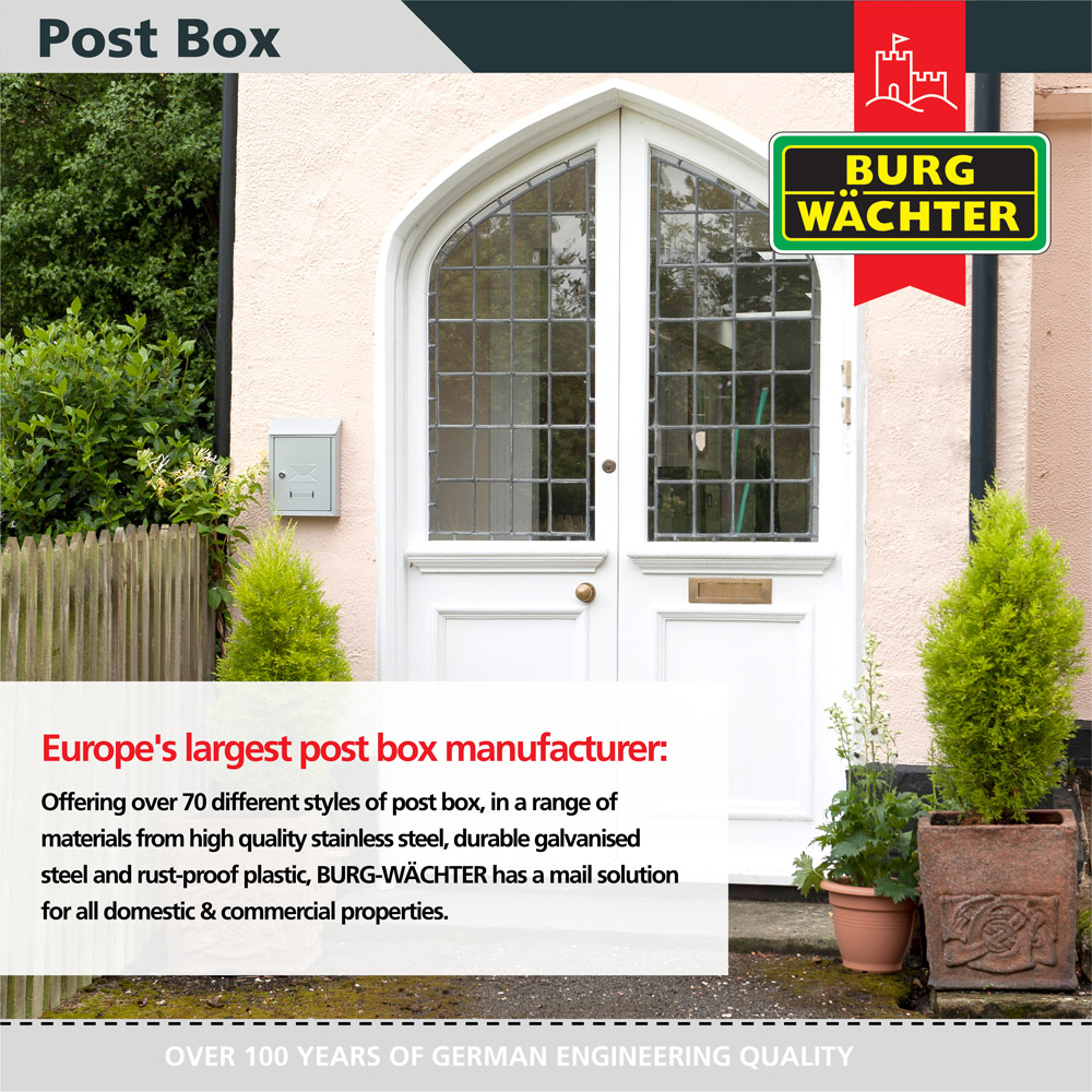 Burg-Wachter Avon Silver Galvanised Steel Top Opening Wall Mounted Lockable Post Box 30 x 21 x 7cm