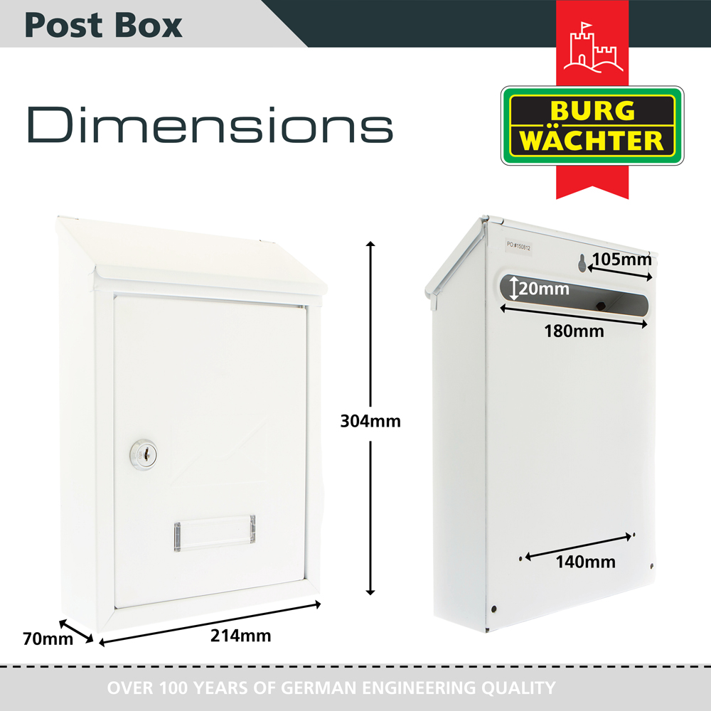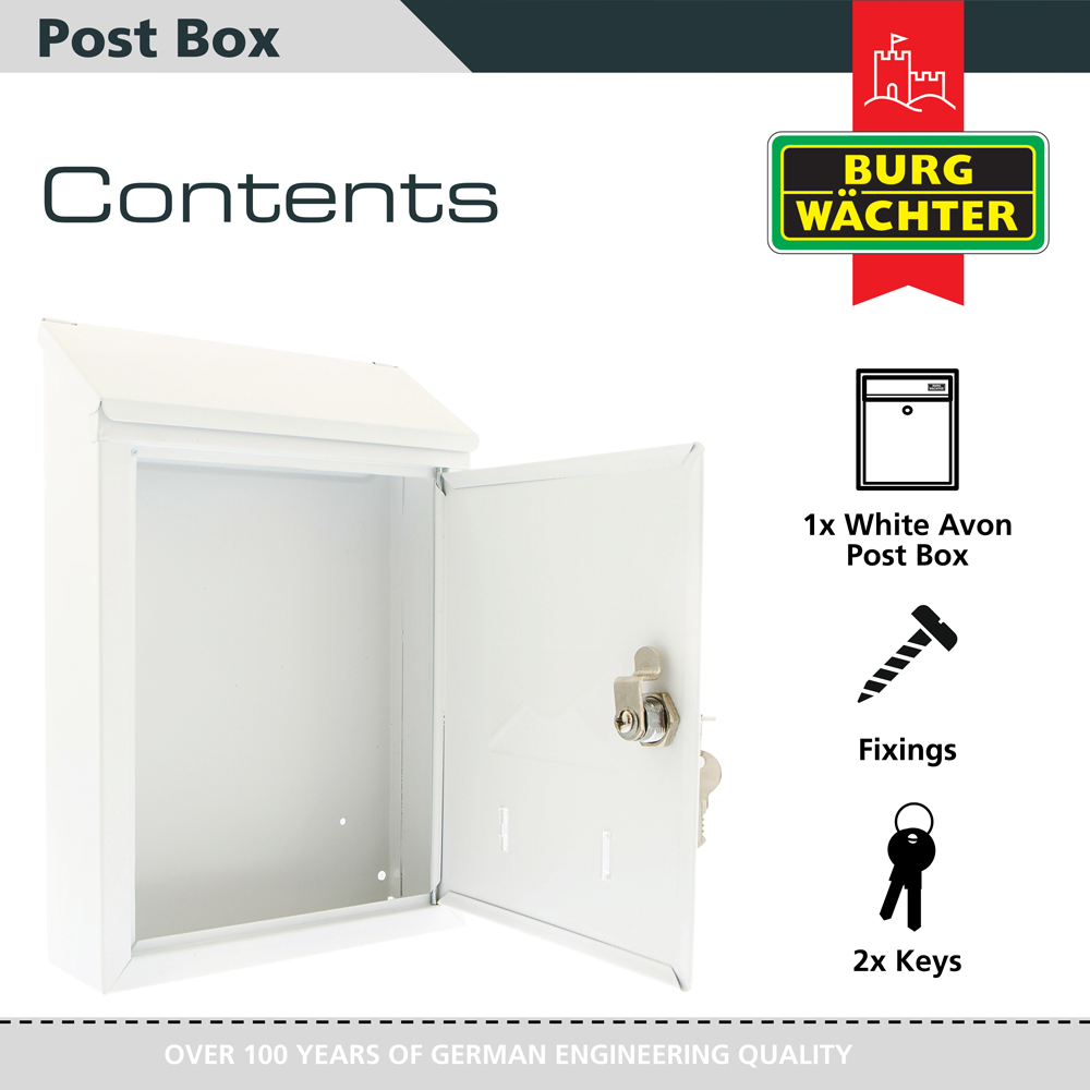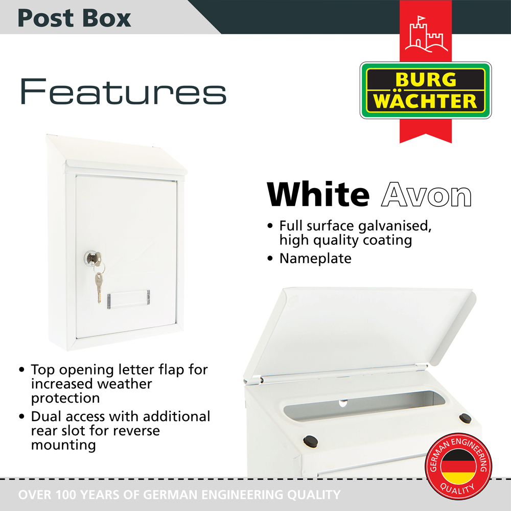 Burg-Wachter Avon White Galvanised Steel Top Opening Wall Mounted Lockable Post Box 30 x 21 x 7cm