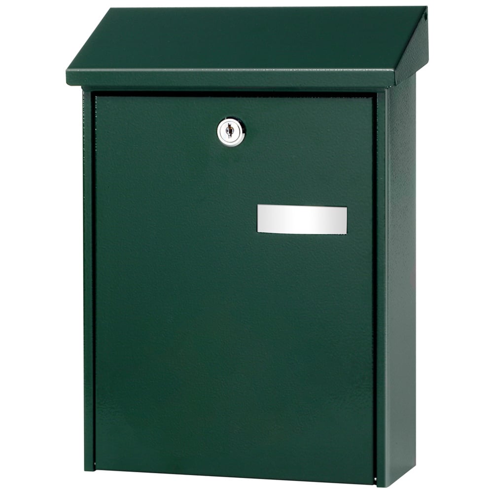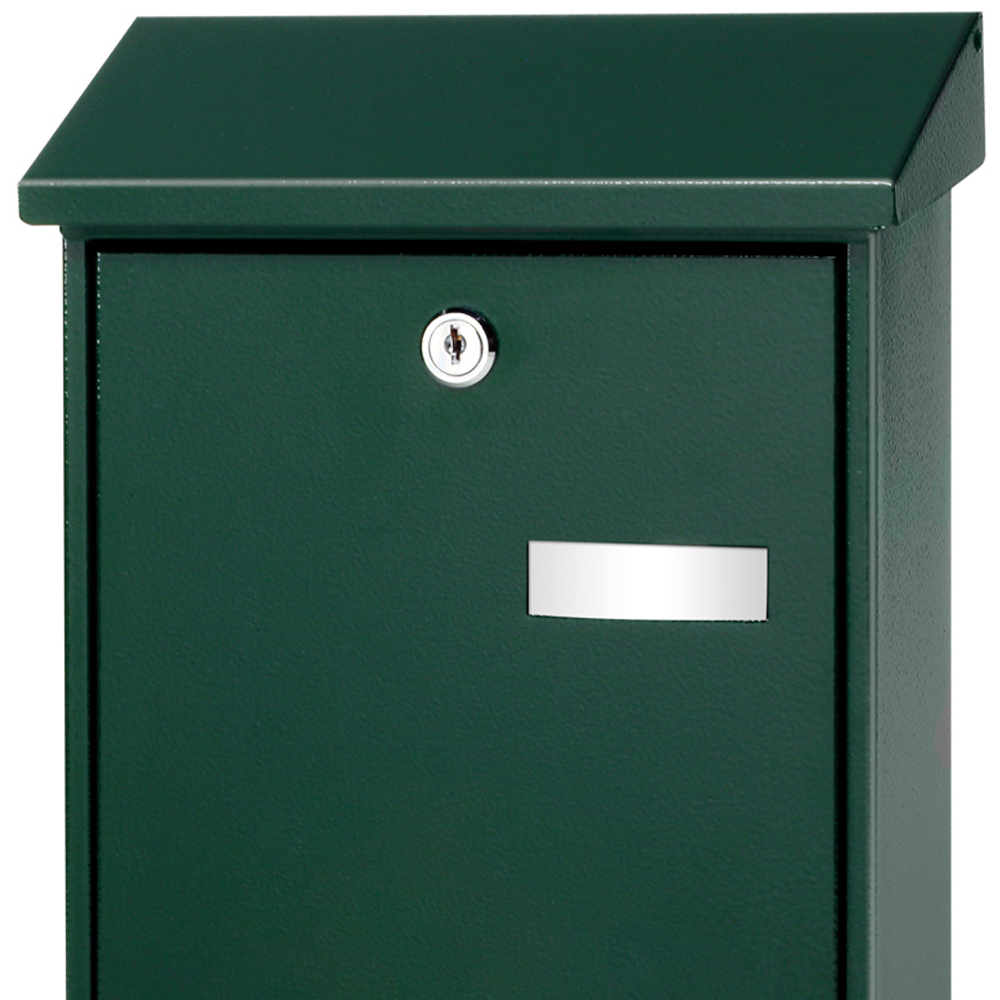 This compact letter box offers reliable protection for your mail. Crafted from galvanized steel with a sloped roof design, it effectively sheds rain and prevents moisture buildup. Two keys are included for secure access.