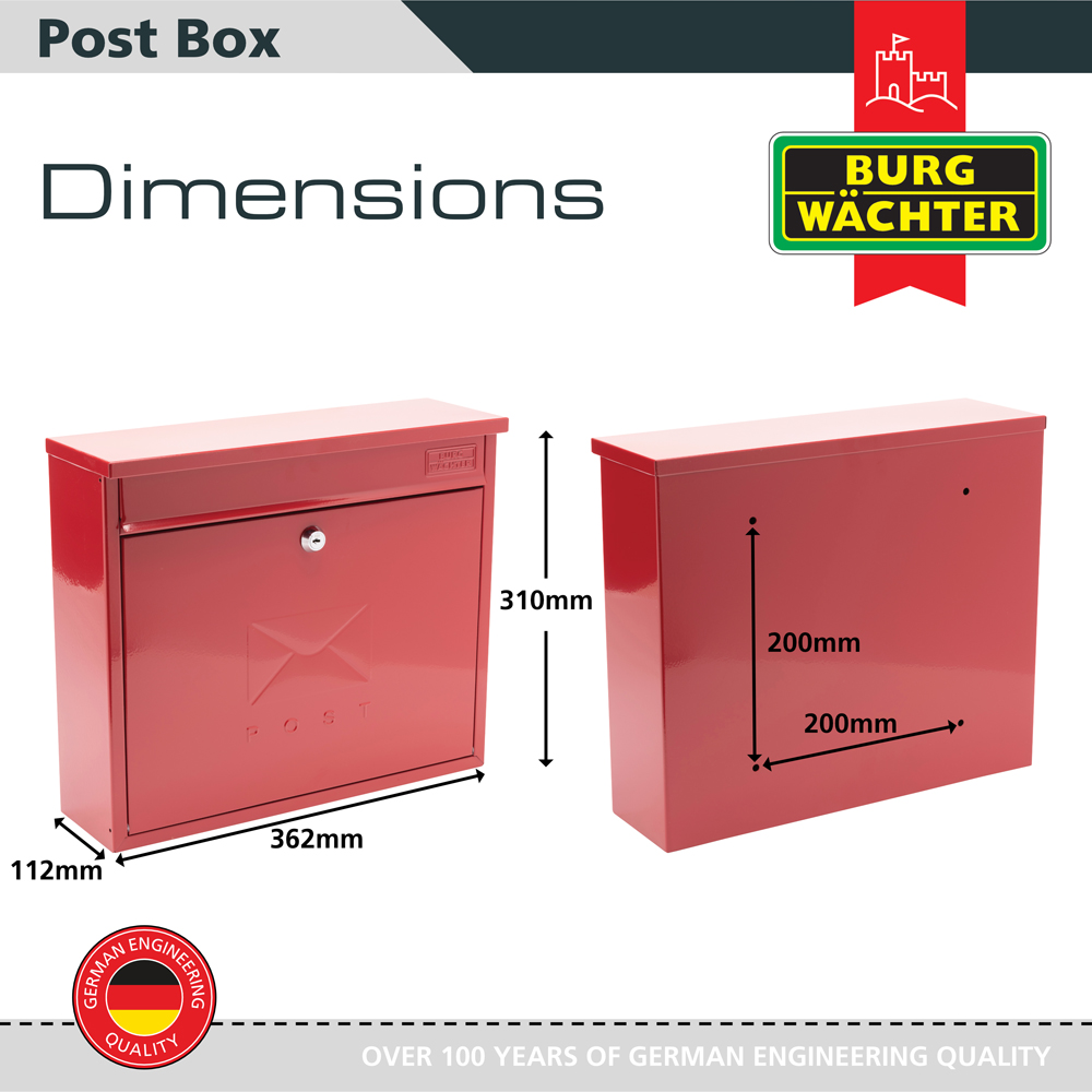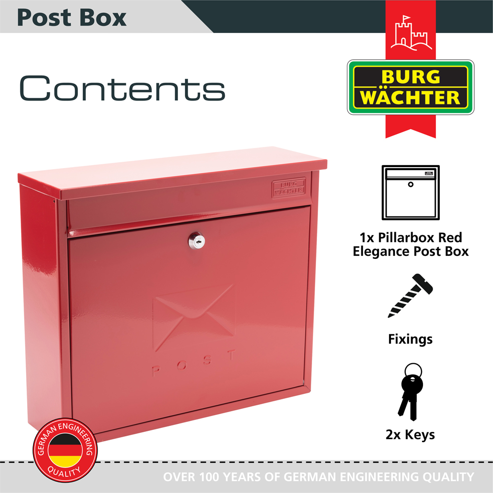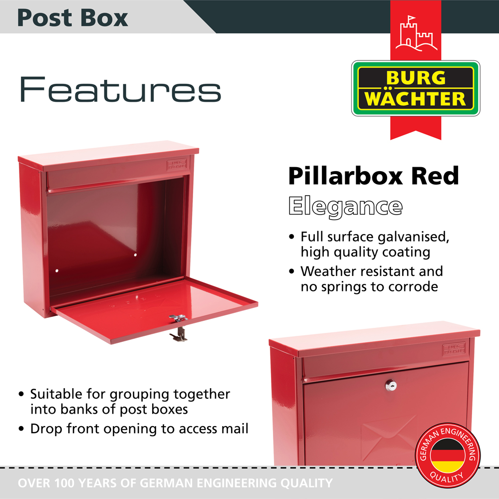 Burg-Wachter Red Elegance Wall Mounted Galvanised Steel Lockable Weatherproof Post Box - 36x31x10cm
