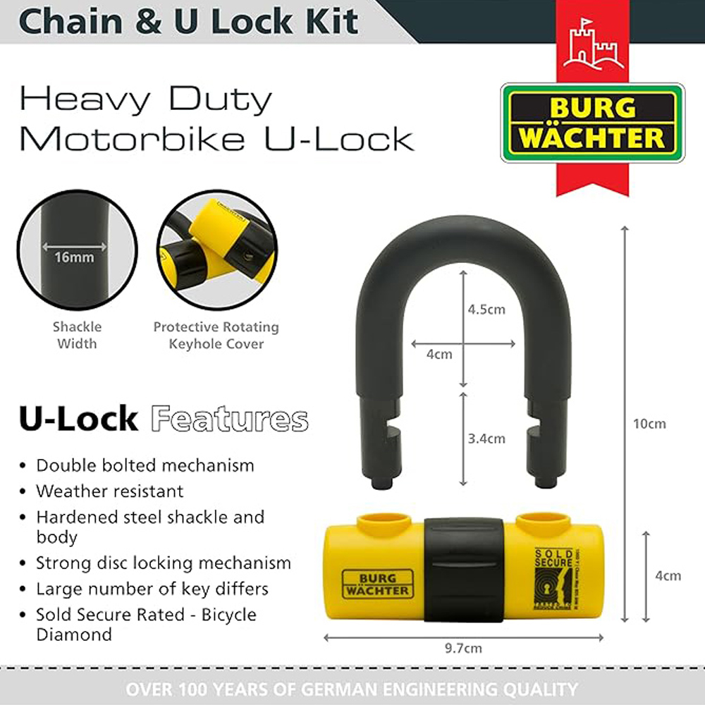 Burg-Wachter Kit Sold Secure Gold 1m x 12mm Motorbike Chain, U-lock + Anchor