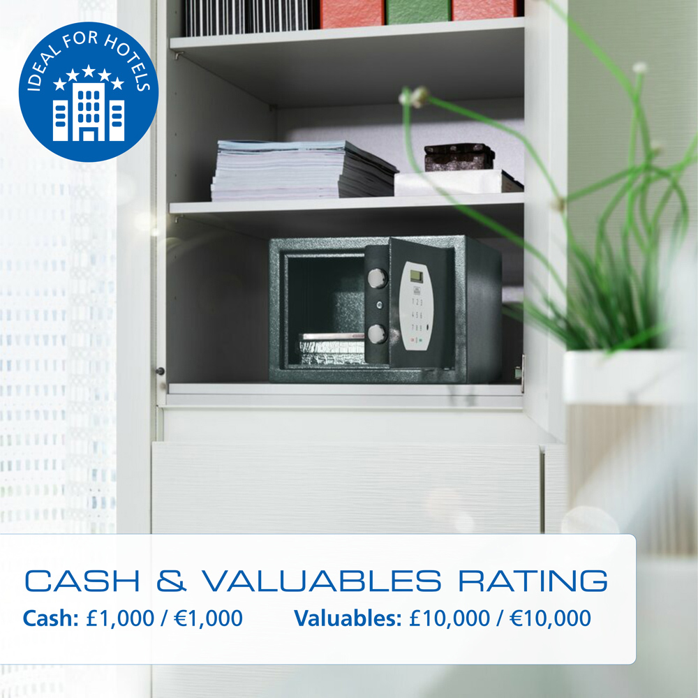 Secure your valuables with the Burg-Wachter PS 110 E Pure Safe. This 6.7L compact electronic safe, perfect for home or office, provides secure storage for money, passports, jewellery, and important documents. Its solid walled body and double-walled door offer robust protection. Features include an easy-to-read LCD, a resettable combination, and touch-sensitive keys. Wall or floor mounting fittings are included.