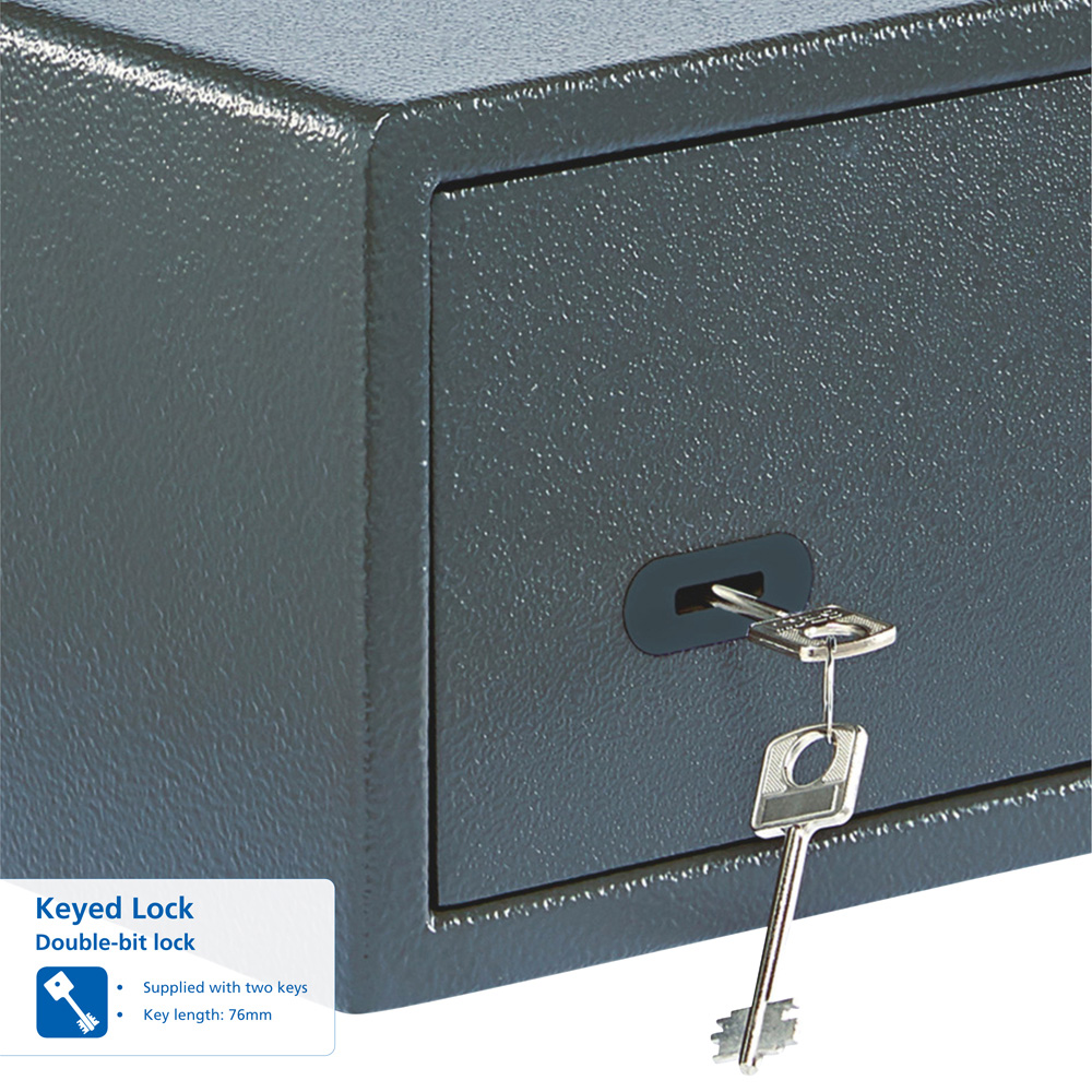 Secure your valuables with the Burg-Wachter PS 110 K Pure Safe, the perfect solution for home or office. This compact 6.7L keyed safe provides reliable storage for money, passports, jewellery, and important documents. Its solid walled body and double-walled door offer robust protection. Two keys are included, along with all necessary fixings for convenient wall or floor mounting. Peace of mind, securely stored.